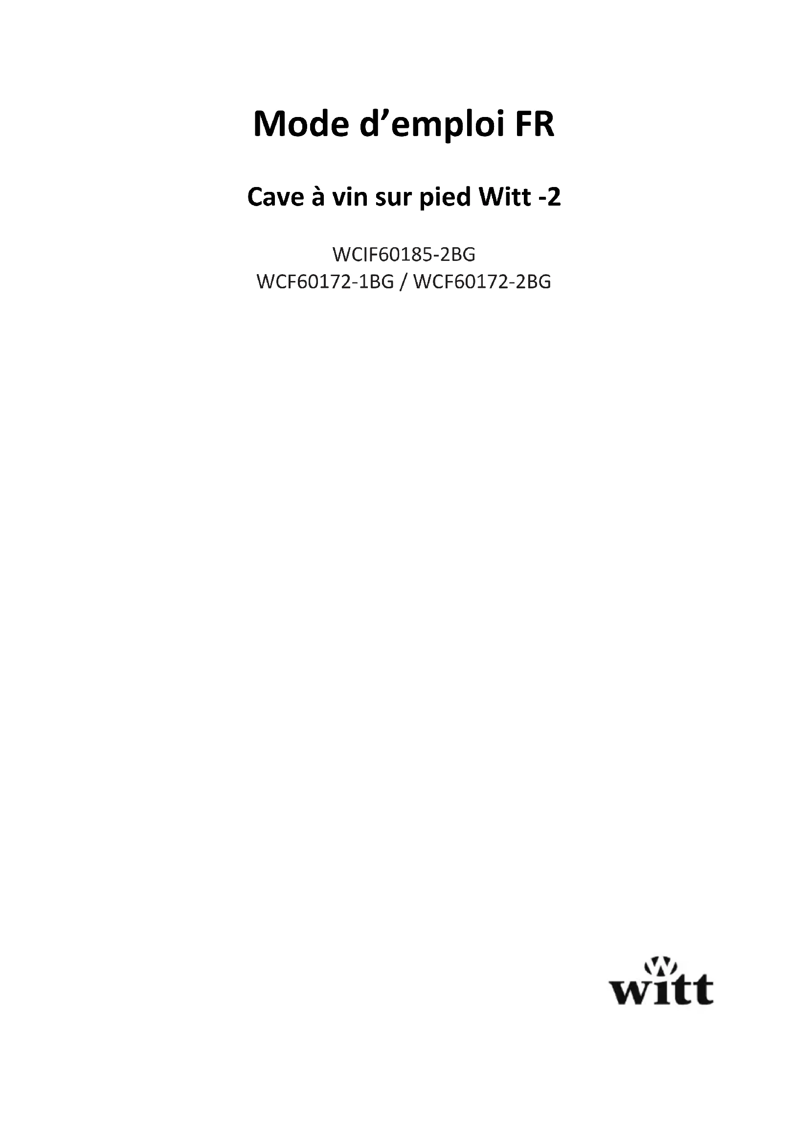 WS60179H2B93 - Cave à vin Witt - Notice d'utilisation et mode d'emploi gratuit