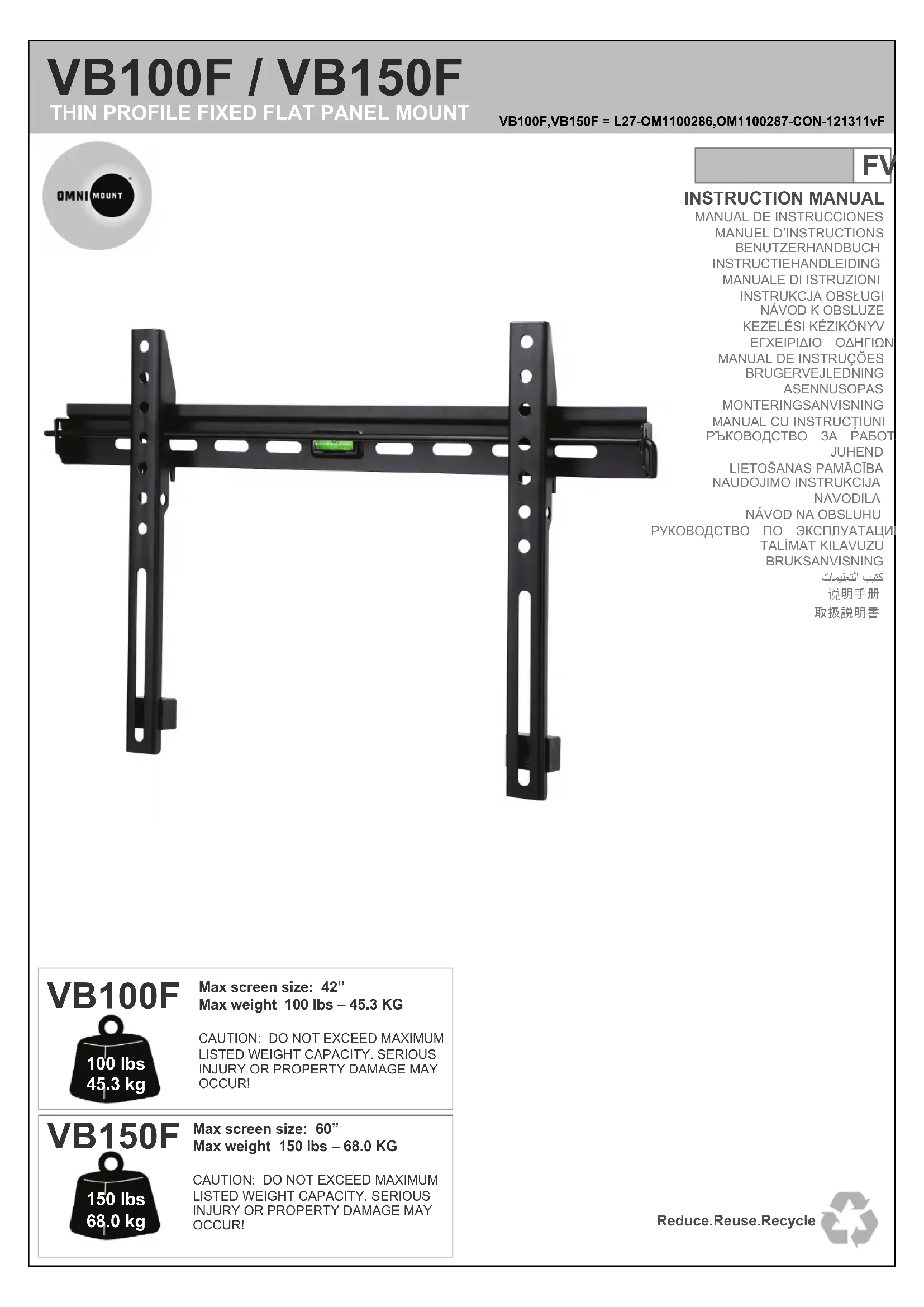 VideoBasics VB100F - Support mural pour téléviseur OmniMount - Notice d'utilisation et mode d'emploi gratuit