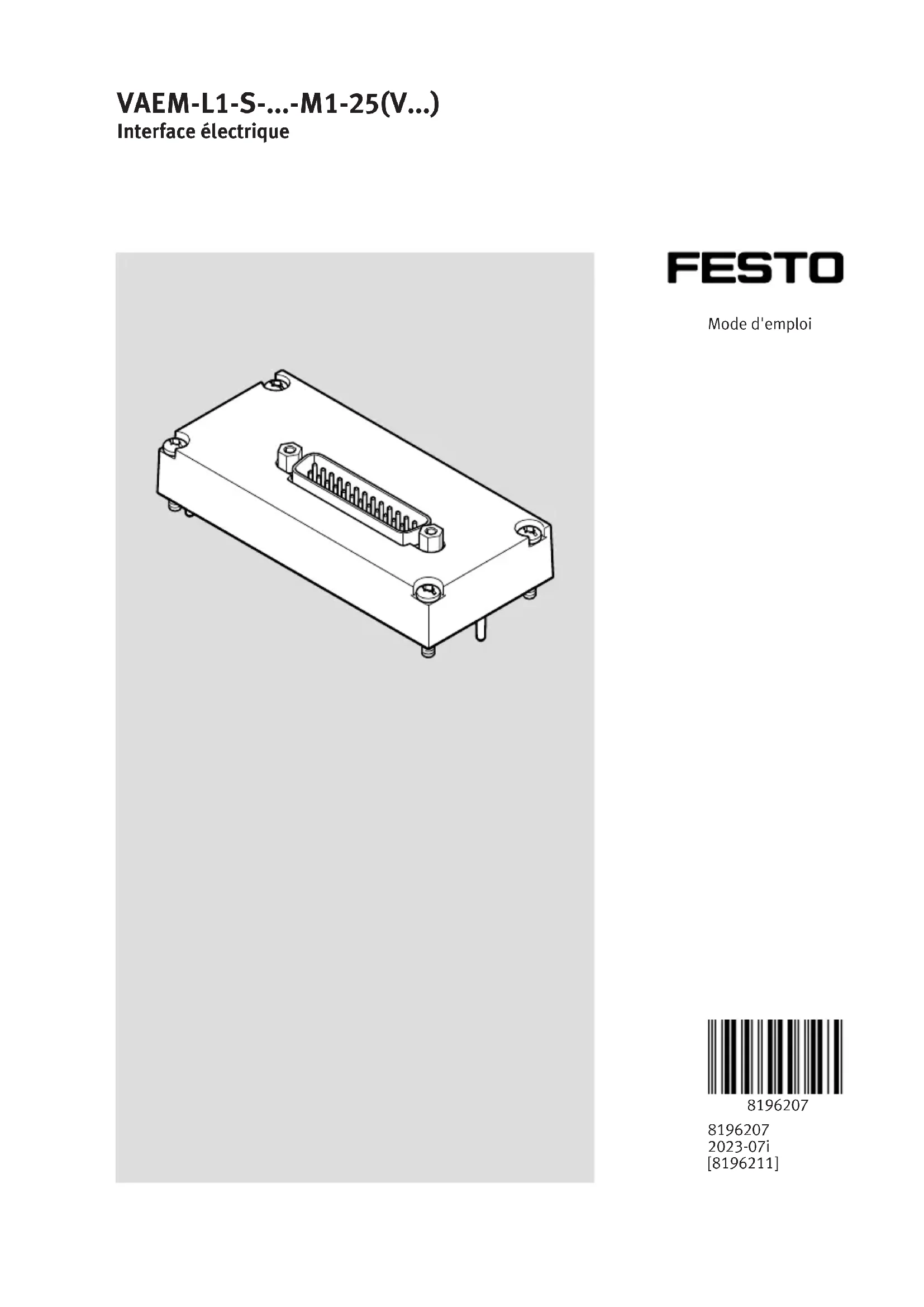 VAEML1SM125V3 - Interface électrique Festo - Notice d'utilisation et mode d'emploi gratuit