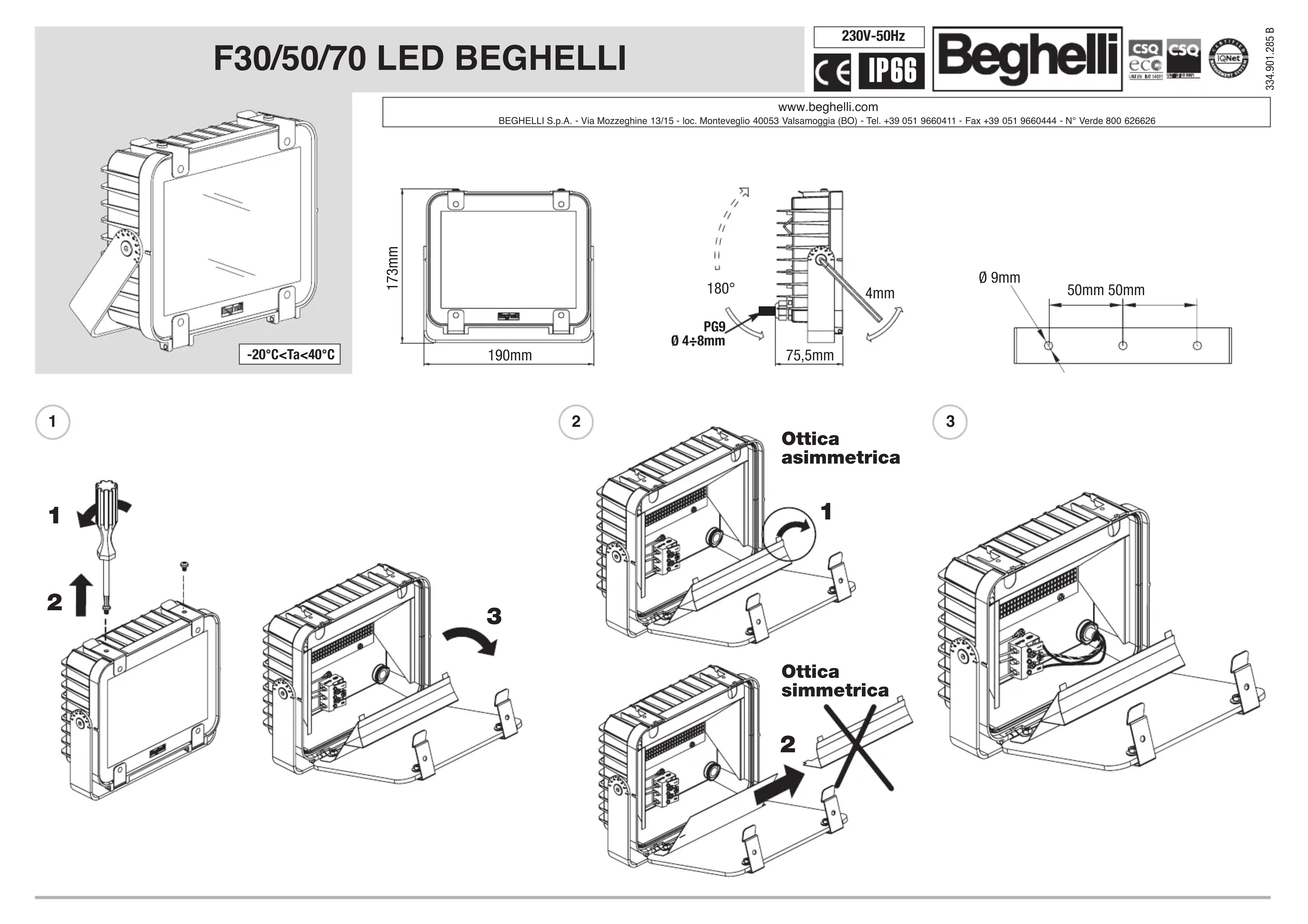 F70LED - Projecteur Beghelli - Notice d'utilisation et mode d'emploi gratuit