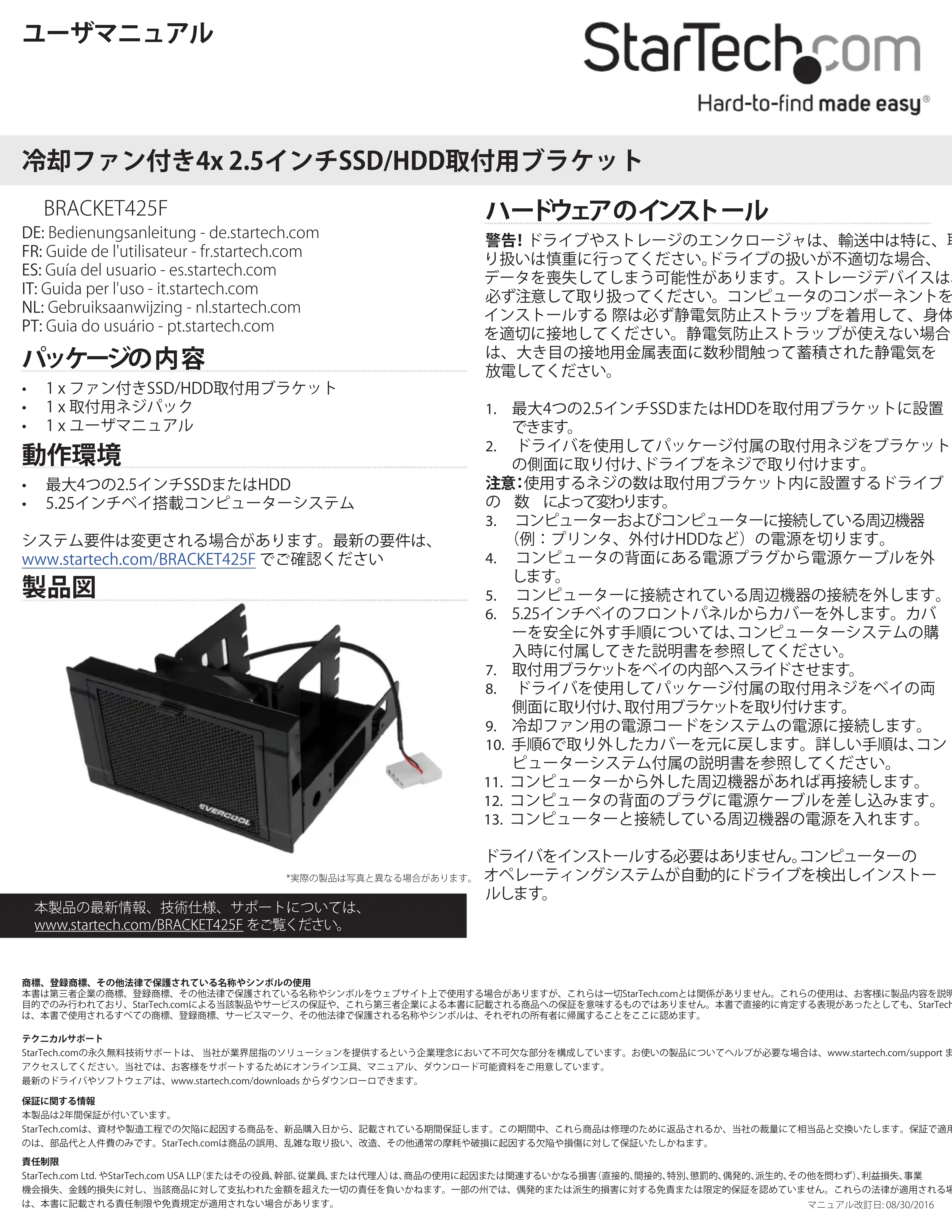 BRACKET425F - Support de disque dur StarTech.com - Notice d'utilisation et mode d'emploi gratuit