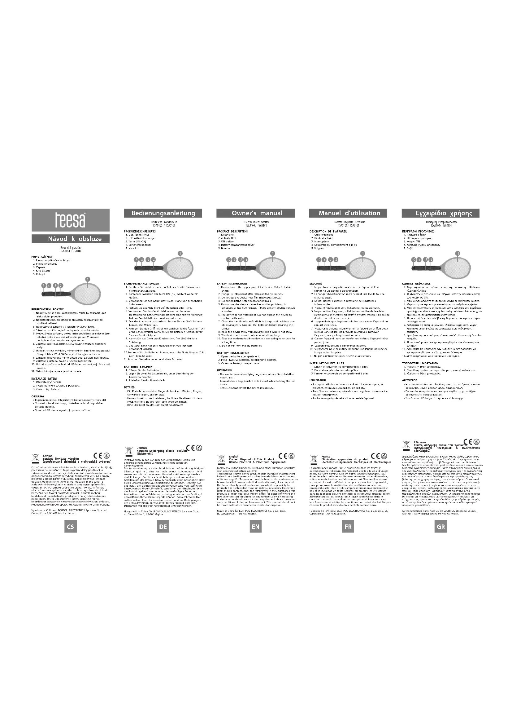 Manuel d’utilisation Tapette Raquette Electrique TSA0160 / TSA0161
