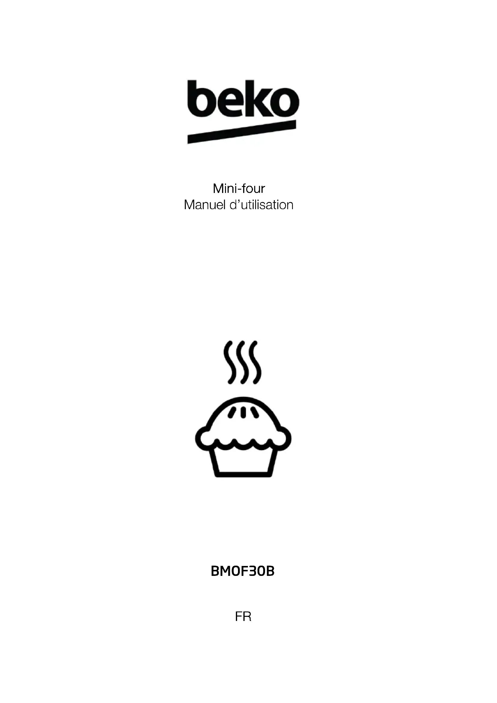 Sensitivity: Internal / Non-Personal Data BMOF30B Mini-four Manuel d’utilisation FRVeuillez d’abord lire ce manuel d’utilisation ! Cher/Chère client(e), Thank you for purchasing this Beko product. Nous espérons que vous obtenez les meilleurs résultats de votre appareil qui est fabriqué avec une haute qualité et une technologie de pointe. Par conséquent, veuillez lire attentivement ce manuel d’utilisation et tous les autres documents d’accompagnement avant d’utiliser l’appareil et conservez-le comme référence pour une utilisation future. Si vous donnez l’appareil à une autre personne, donnez-lui également le manuel d’utilisation. Prêtez attention à tous les avertissements et informations figurant dans ce manuel. Remember that this user manual is also applicable for several other models. Les diffé- rences entre les modèles seront identifiées dans le manuel. Explication des symboles Les symboles suivants sont utilisés dans ce manuel : Informations importantes ou consignes utiles relatives à l'utilisation. Avertissement en cas de situations dangereuses pour la vie et les biens. Attention aux risques d'électrocution. Avertissement de risque d'incendie. Avertissement relatif aux surfaces chaudes.