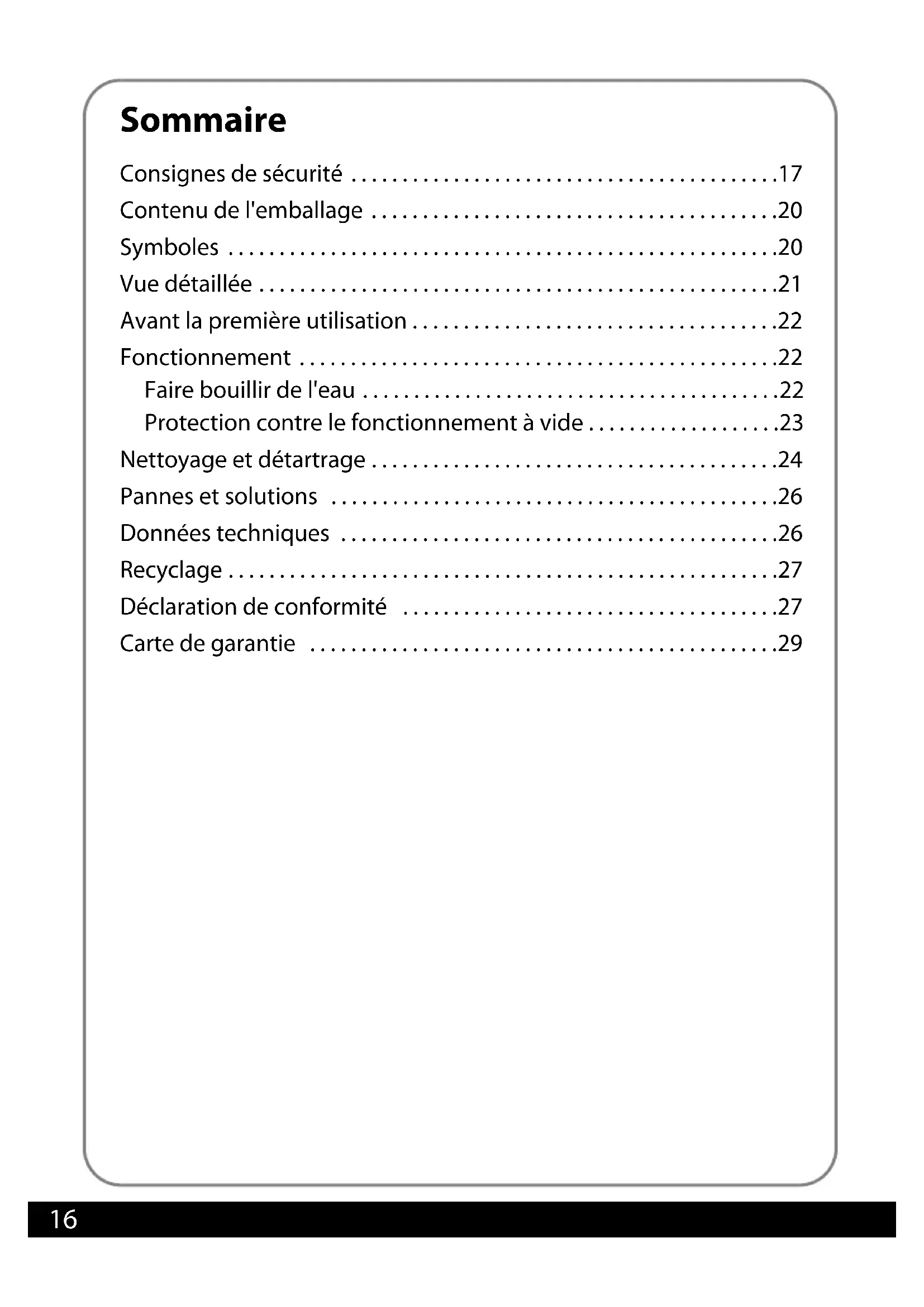 - Wasserkocher Print BEL Druckbuch.book Seite 15 Donnerstag, 14. November 2024 8:06 0816 Sommaire Consignes de sécurité p. 17