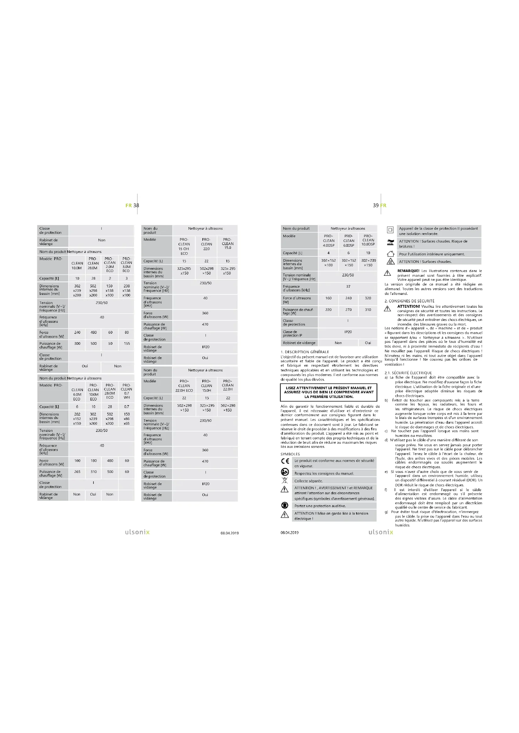 x138 x100 Nom du produit Nettoyeur à ultrasons Modèle PRO- CLEAN 6.0ECO PRO- CLEAN 0.7M PRO- CLEAN