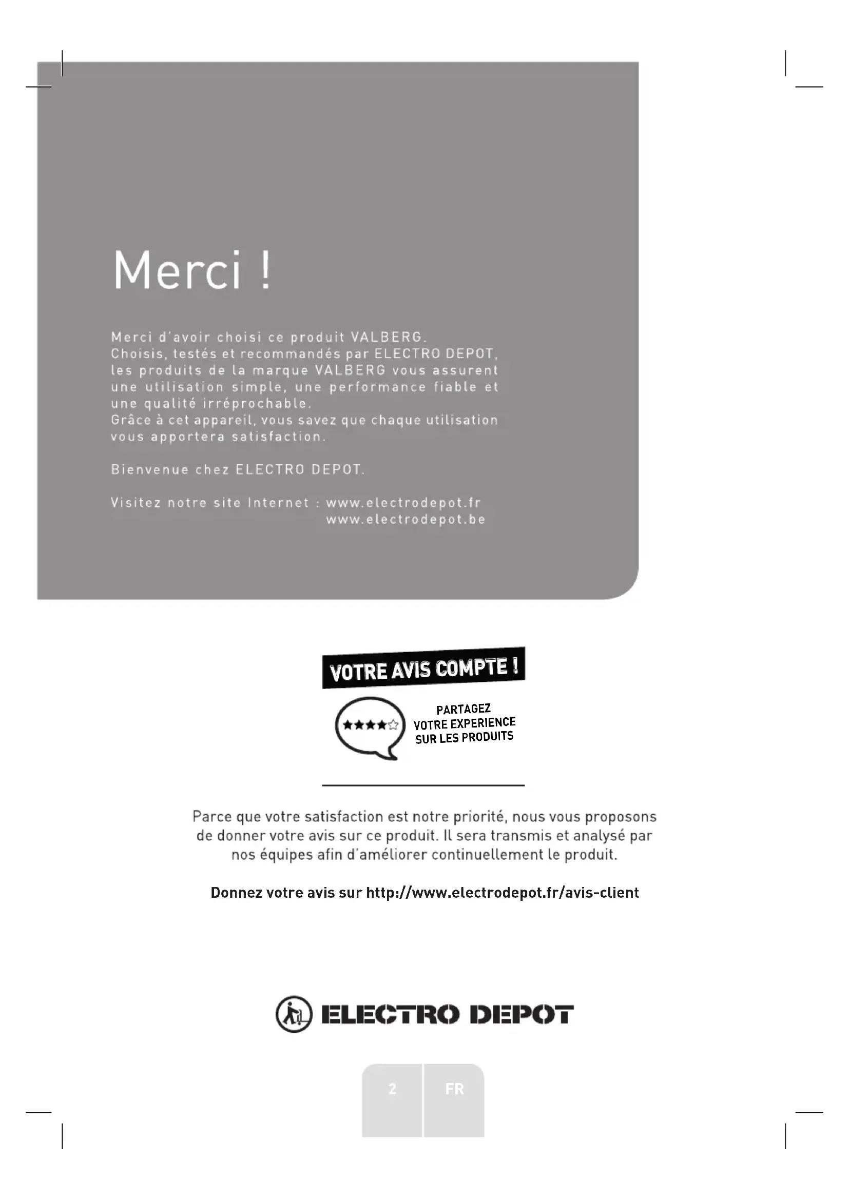 Donnez votre avis sur http://www.electrodepot.fr/avis-client3 FR Les notices sont aussi disponibles sur le site http://www.electrodepot.fr/sav/notices/ http://www.electrodepot.be/fr/sav/notices