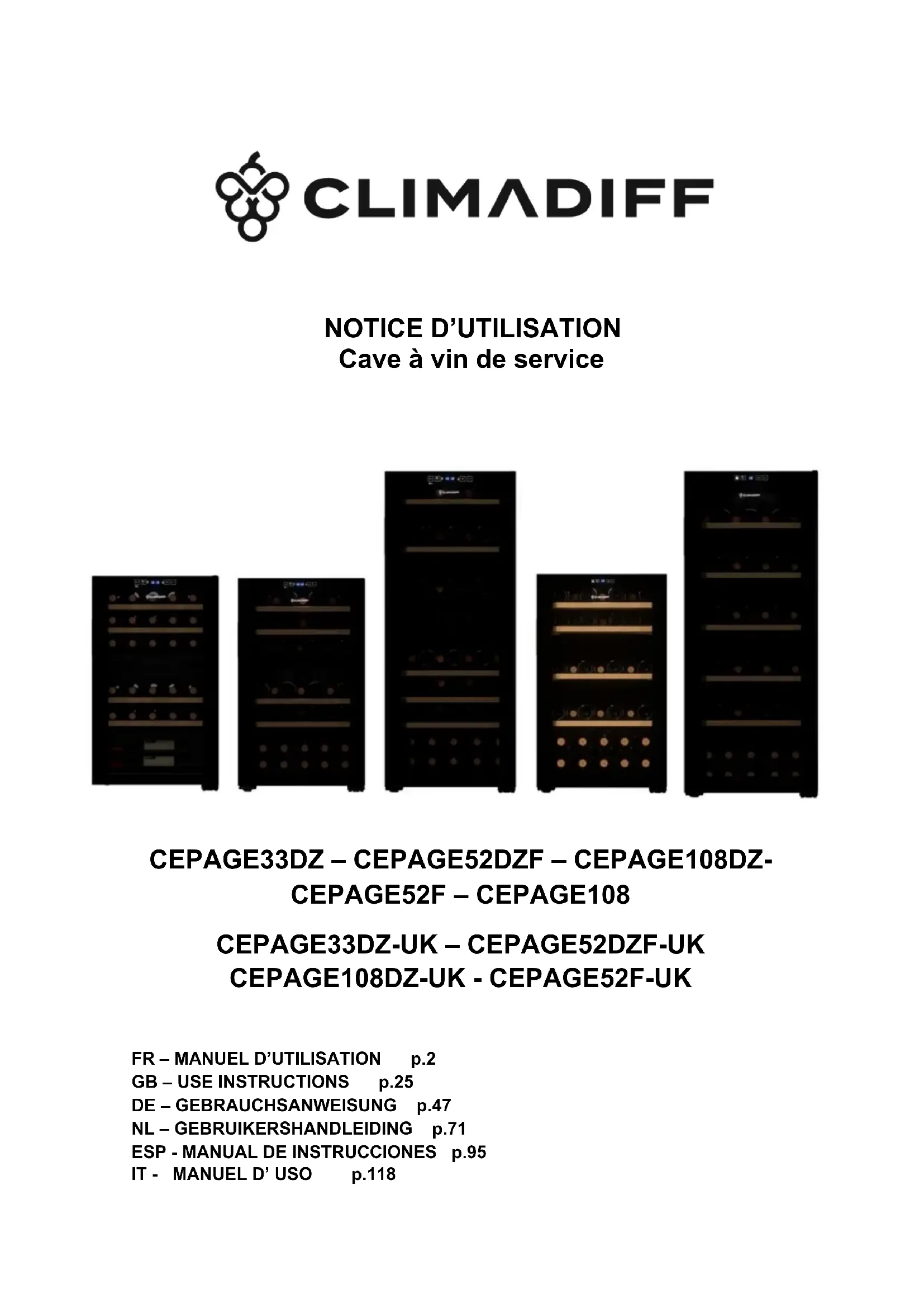 CEPAGE33DZ - Cave à vin CLIMADIFF - Notice d'utilisation et mode d'emploi gratuit