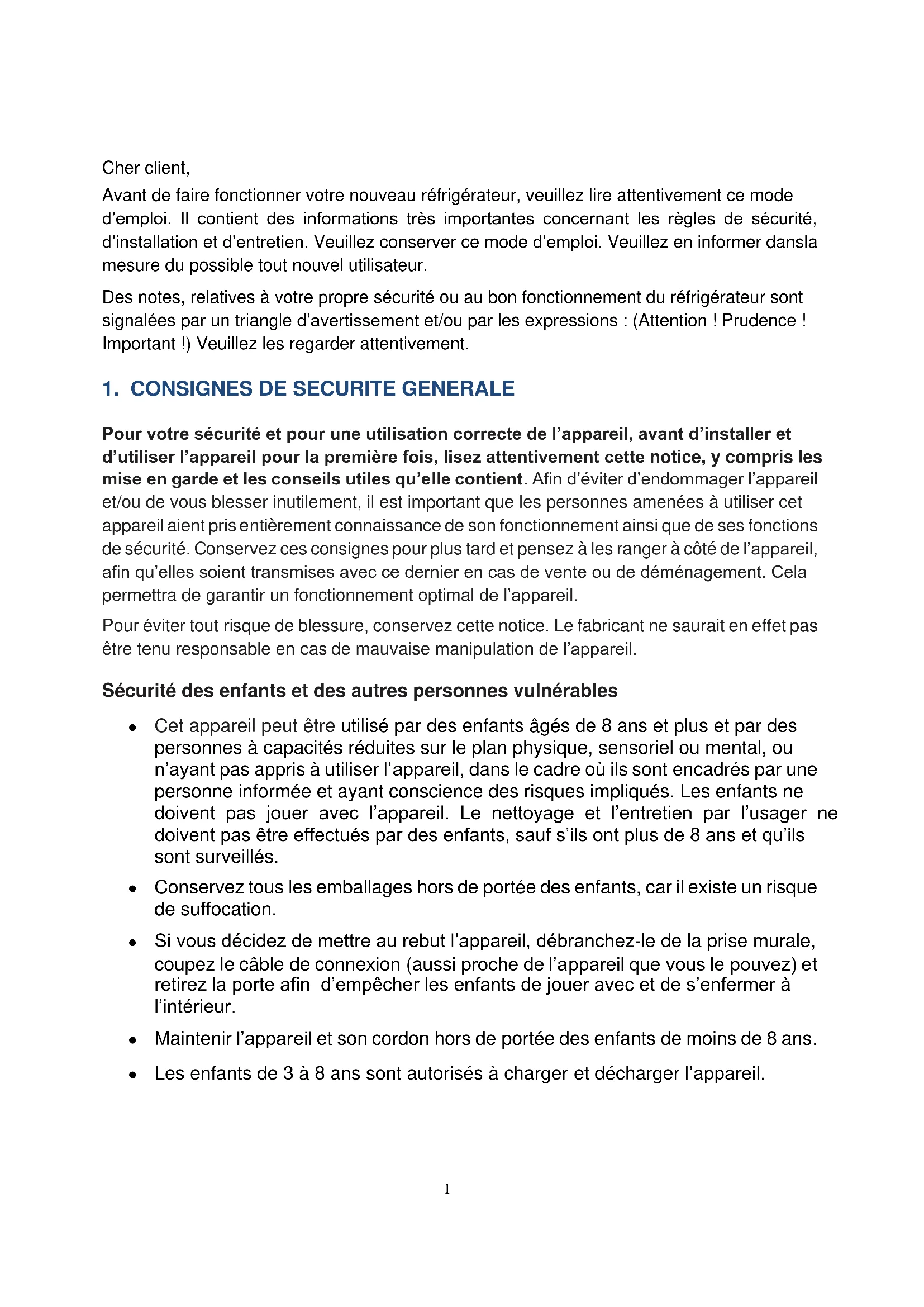 1. CONSIGNES DE SECURITE GENERALE