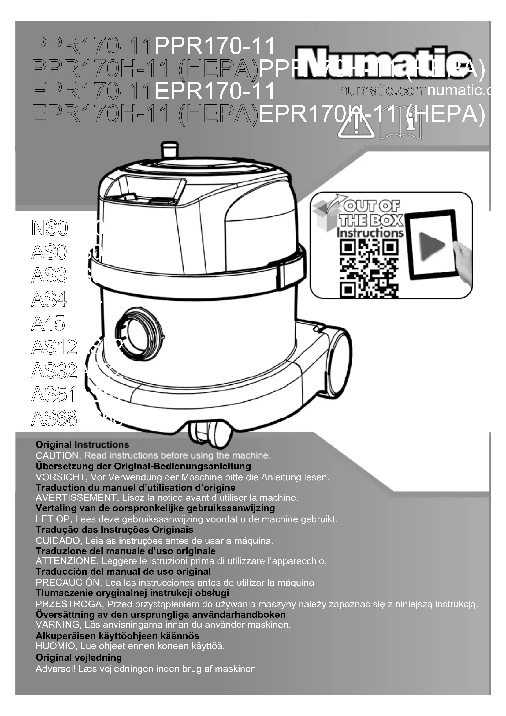 Retrouvez gratuitement la notice de l'appareil ERP170H Numatic au format PDF.
