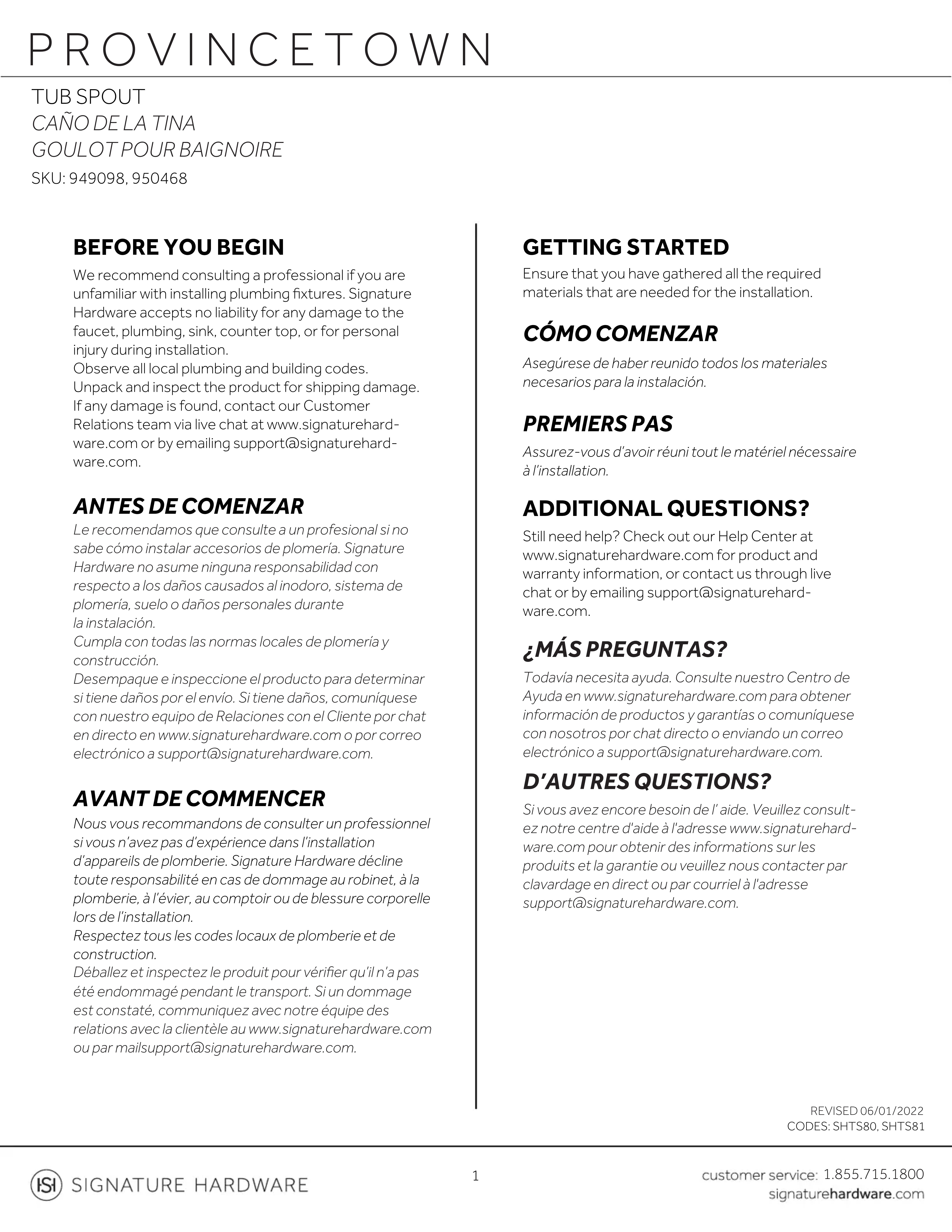 Retrouvez gratuitement la notice de l'appareil Provincetown SHTS80ZBN Signature Hardware au format PDF.