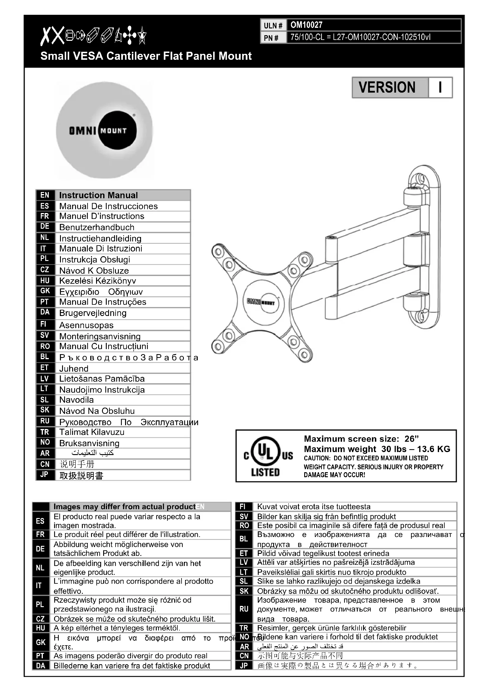 Retrouvez gratuitement la notice de l'appareil 75100 CL OmniMount au format PDF.
