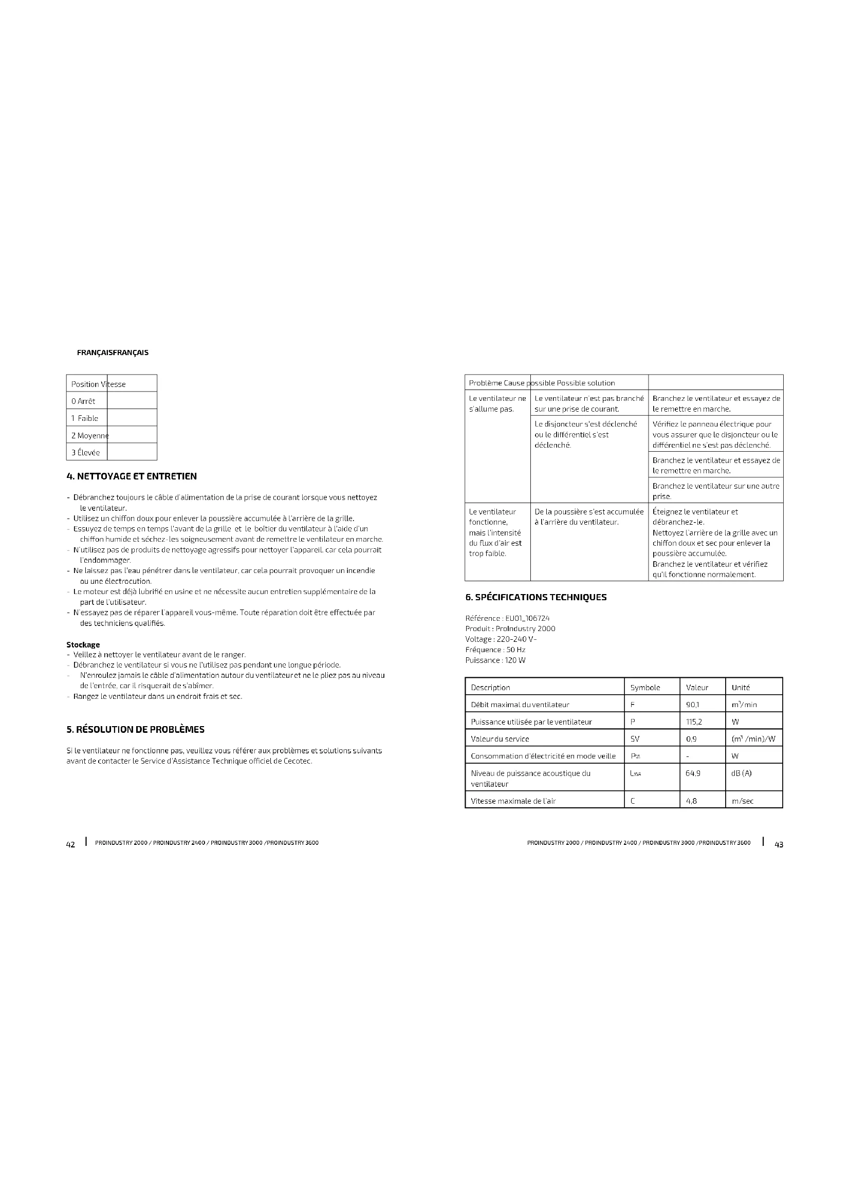 Ce ventilateur dispose de trois réglages de vitesse sur le sélecteur, ce qui vous permet de contrôler l’intensité du ux d’air.PROINDUSTRY 2000 / PROINDUSTRY 2400 / PROINDUSTRY 3000 /PROINDUSTRY 3600PROINDUSTRY 2000 / PROINDUSTRY 2400 / PROINDUSTRY 3000 /PROINDUSTRY 3600