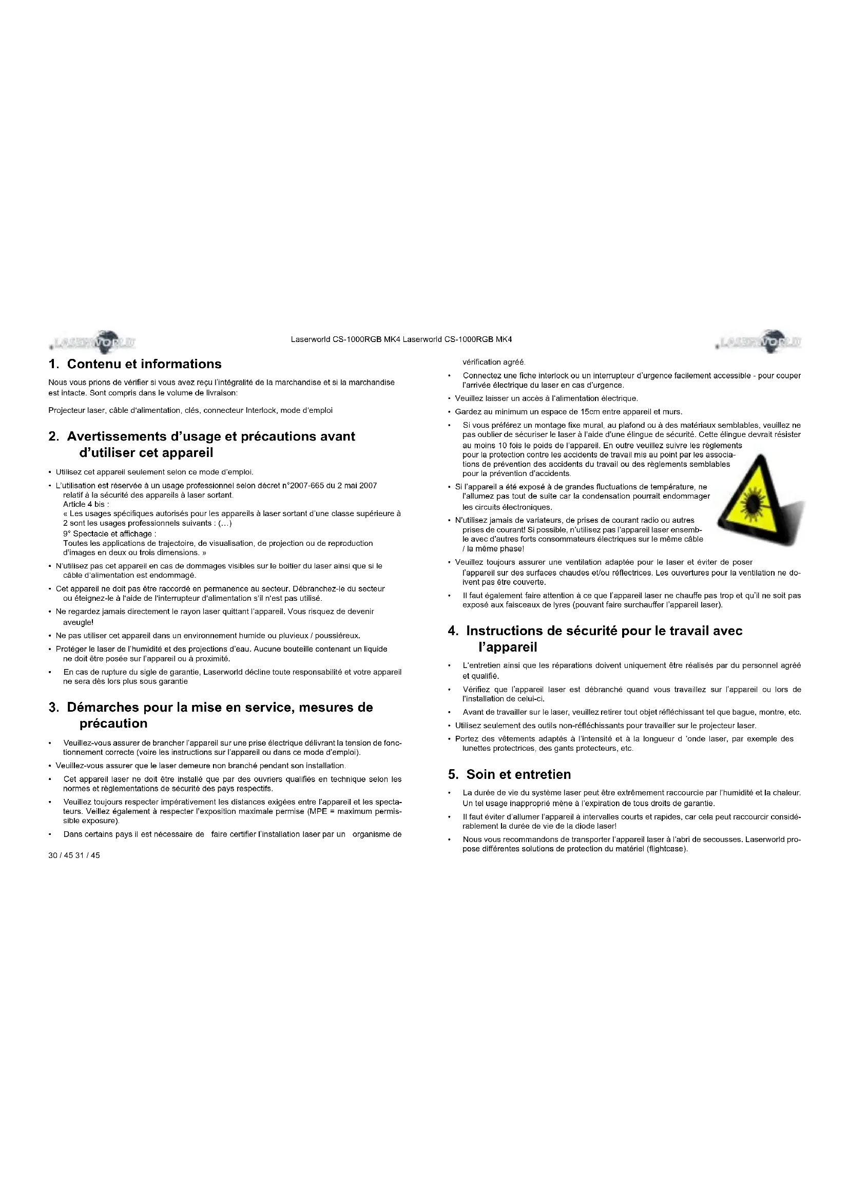Retrouvez gratuitement la notice de l'appareil CS1000RGB Laserworld au format PDF.
