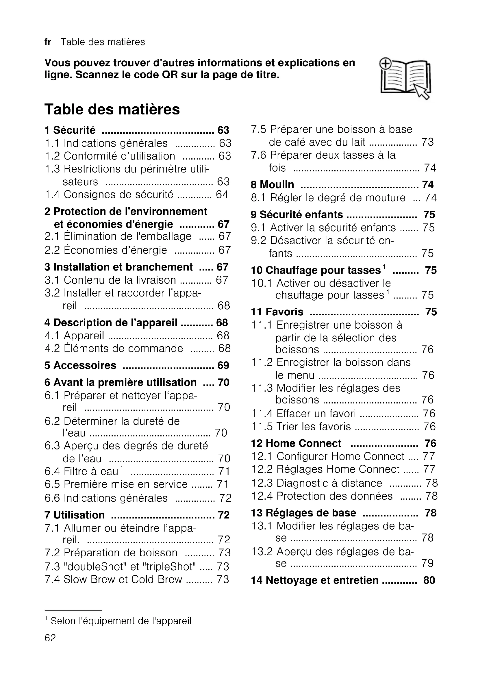 Selon l'équipement de l'appareil 62Sécurité fr