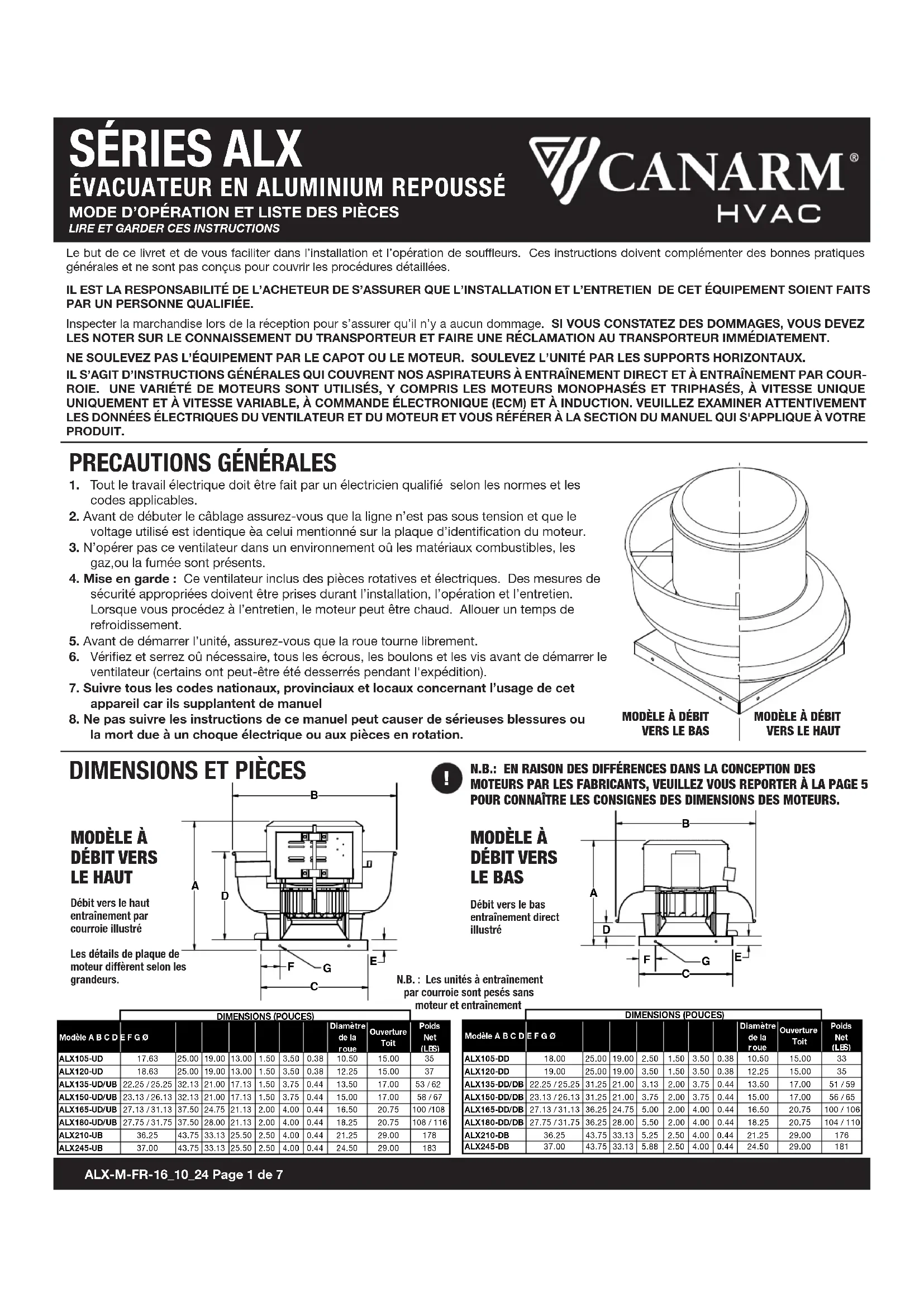 MODE D'EMPLOI ALX165DD050EC Canarm