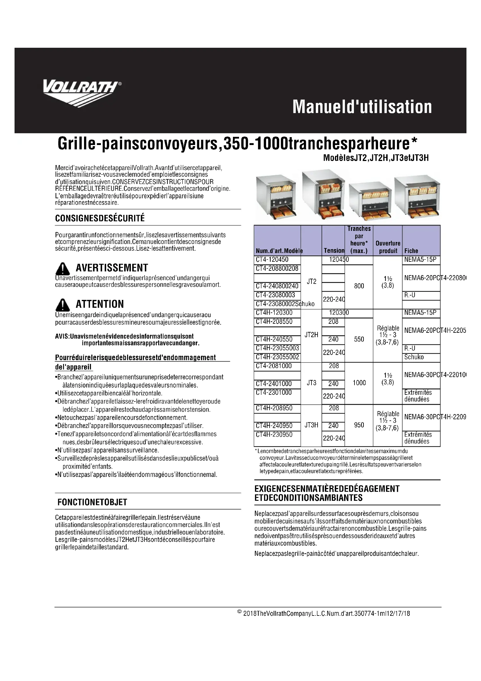 CT4240800 - Grille pain Vollrath - Notice d'utilisation et mode d'emploi gratuit