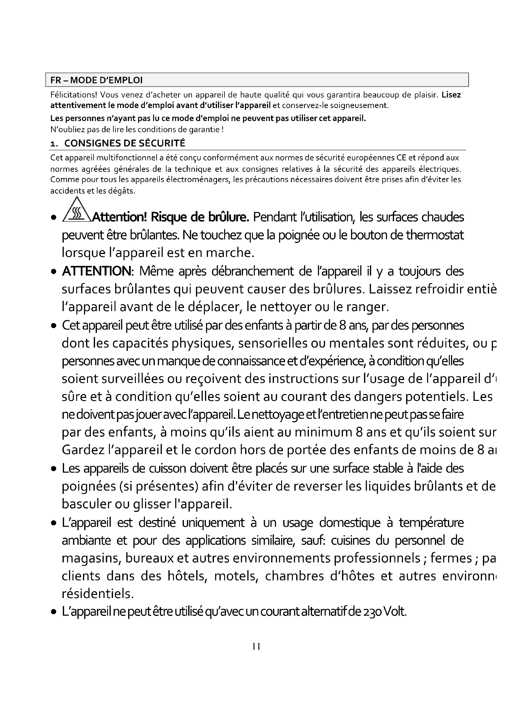 - Cet appareil est uniquement conçu pour griller/cuire. Cet appareil ne peut pas être utilisé à d’autres fins ou être combiné avec d’autres appareils !