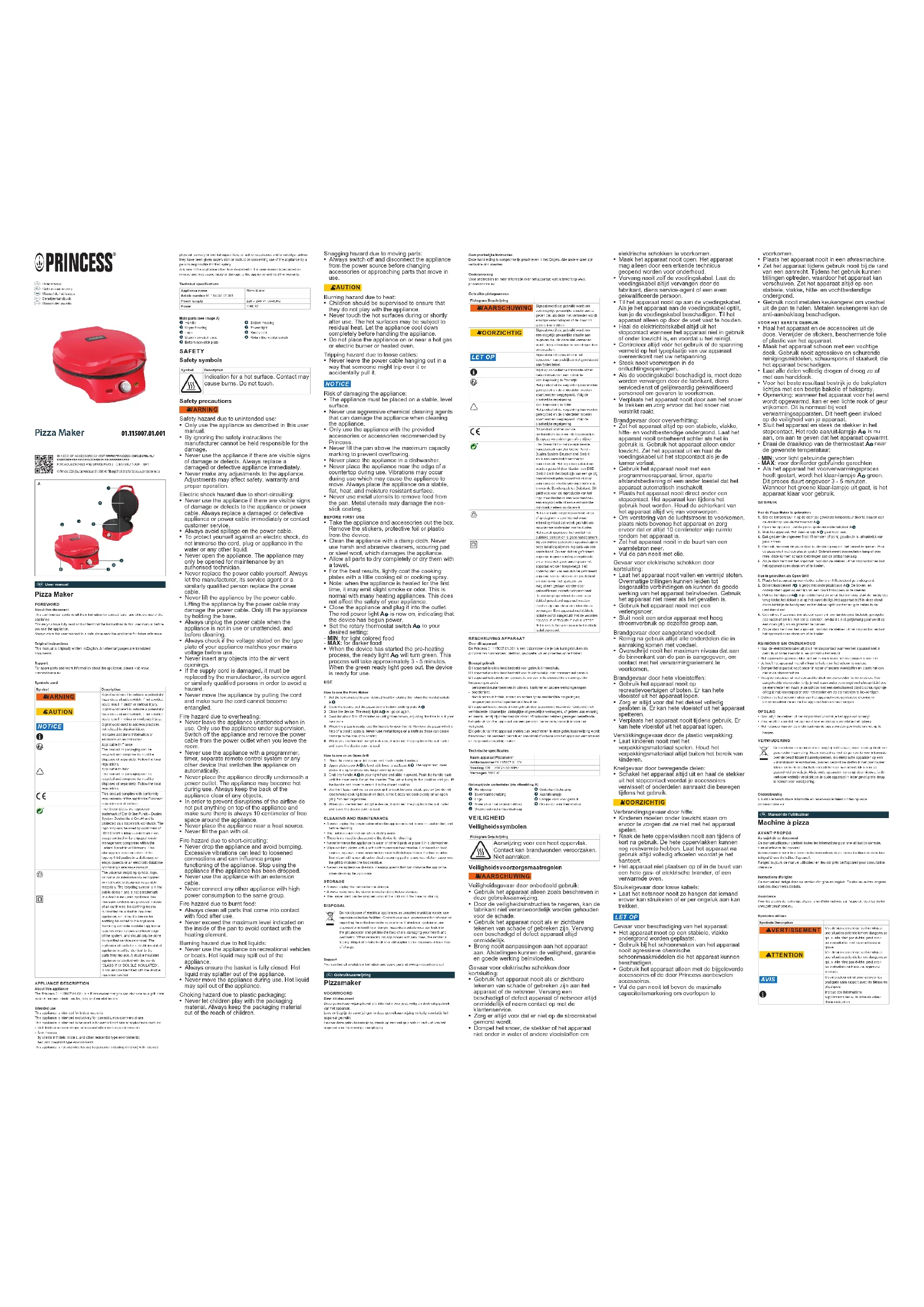 Manuel de l'utilisateur Machine à pizza AVANT-PROPOS Au sujet de ce documentCe manuel utilisateur contient toutes les informations pour une utilisation correcte, sûre et efficace de l'appareil.Assurez-vous d'avoir lu et compris les instructions de ce manuel utilisateur dans leur intégralité avant d'utiliser l'appareil.Rangez toujours ce manuel utilisateur en lieu sûr près de l'appareil pour consultation ultérieure.Instructions d'origineCe manuel est rédigé dans sa version d'origine en anglais. Toutes les autres langues sont des documents traduits.AssistancePour les pièces de rechange et pour plus d'informations sur l'appareil, veuillez visiter www.princesshome.eu.Symboles utilisésSymbole Description