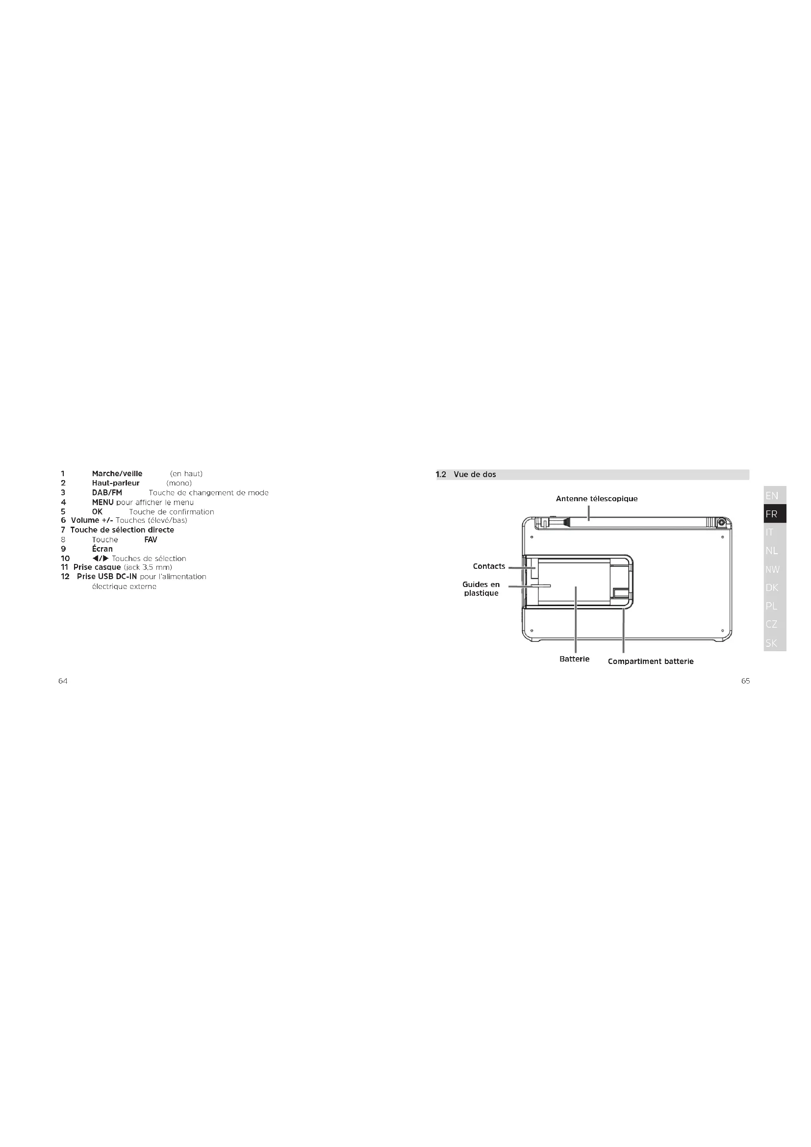 Antenne télescopique Batterie Guides en plastique Contacts Compartiment batterie BDA DigitRadio 1.indd 64-65 16/04/2018 16:4166