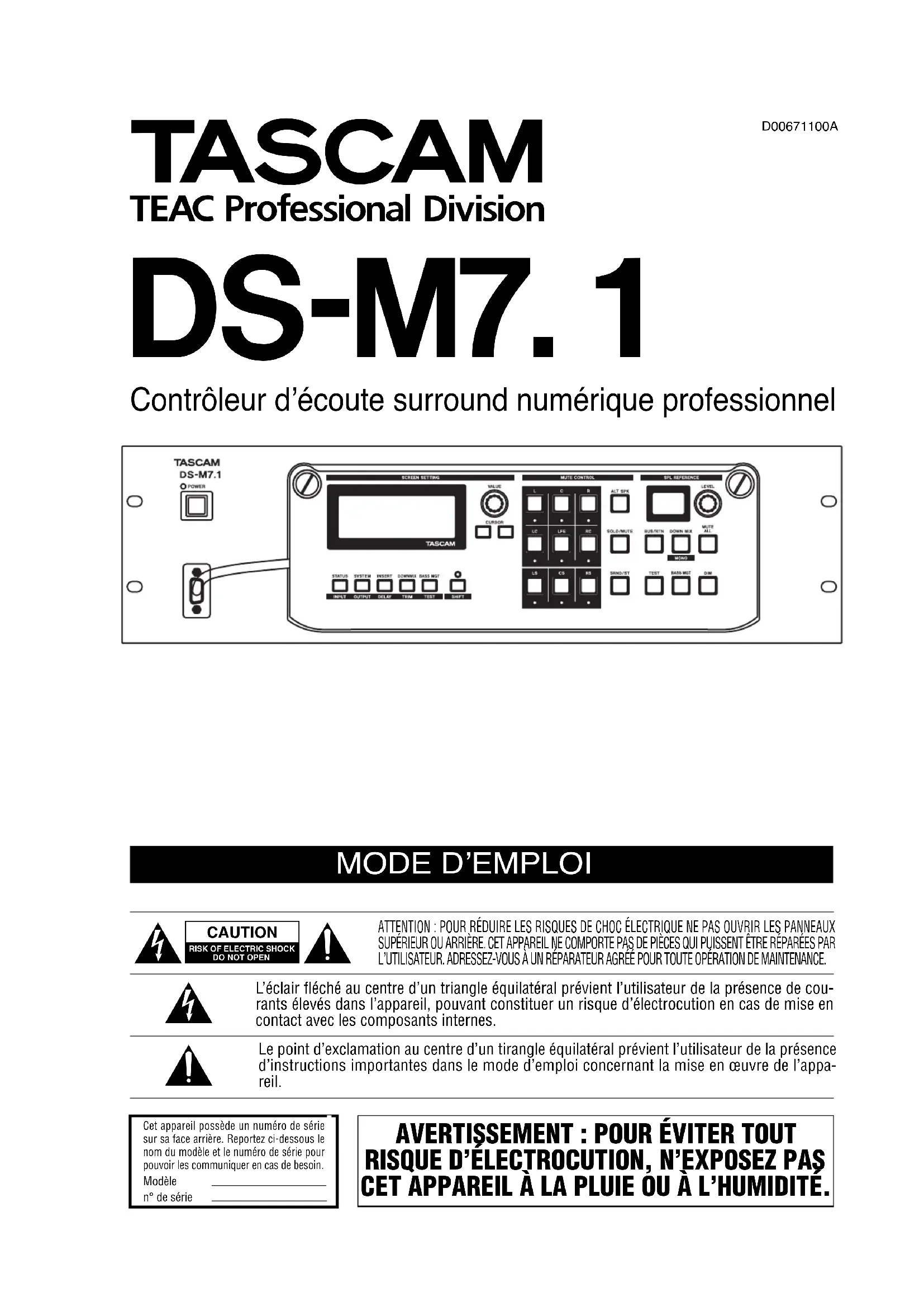 MODE D'EMPLOI DSM7.1 TASCAM