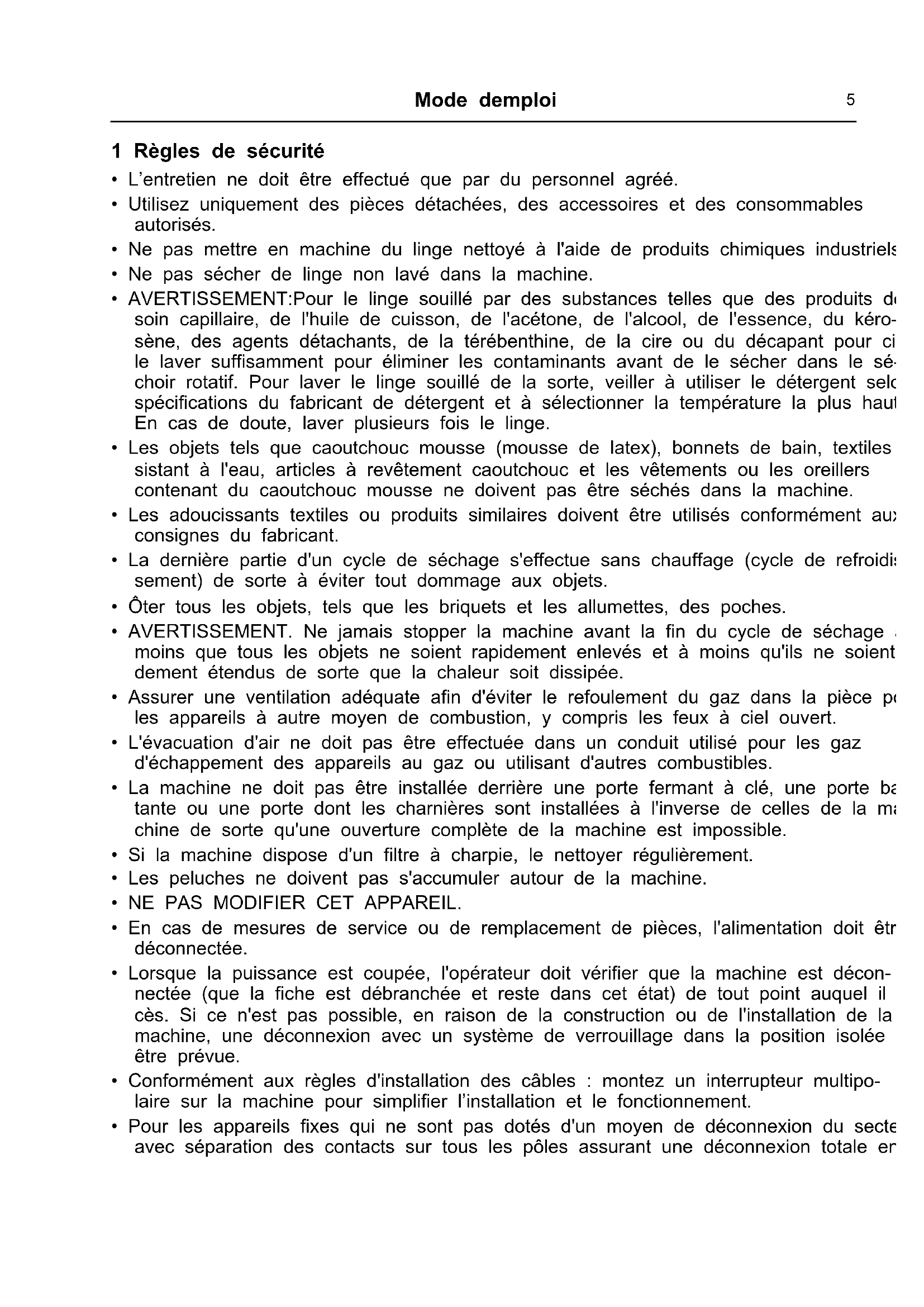 - Ne pas mettre en machine du linge nettoyé à l'aide de produits chimiques industriels.