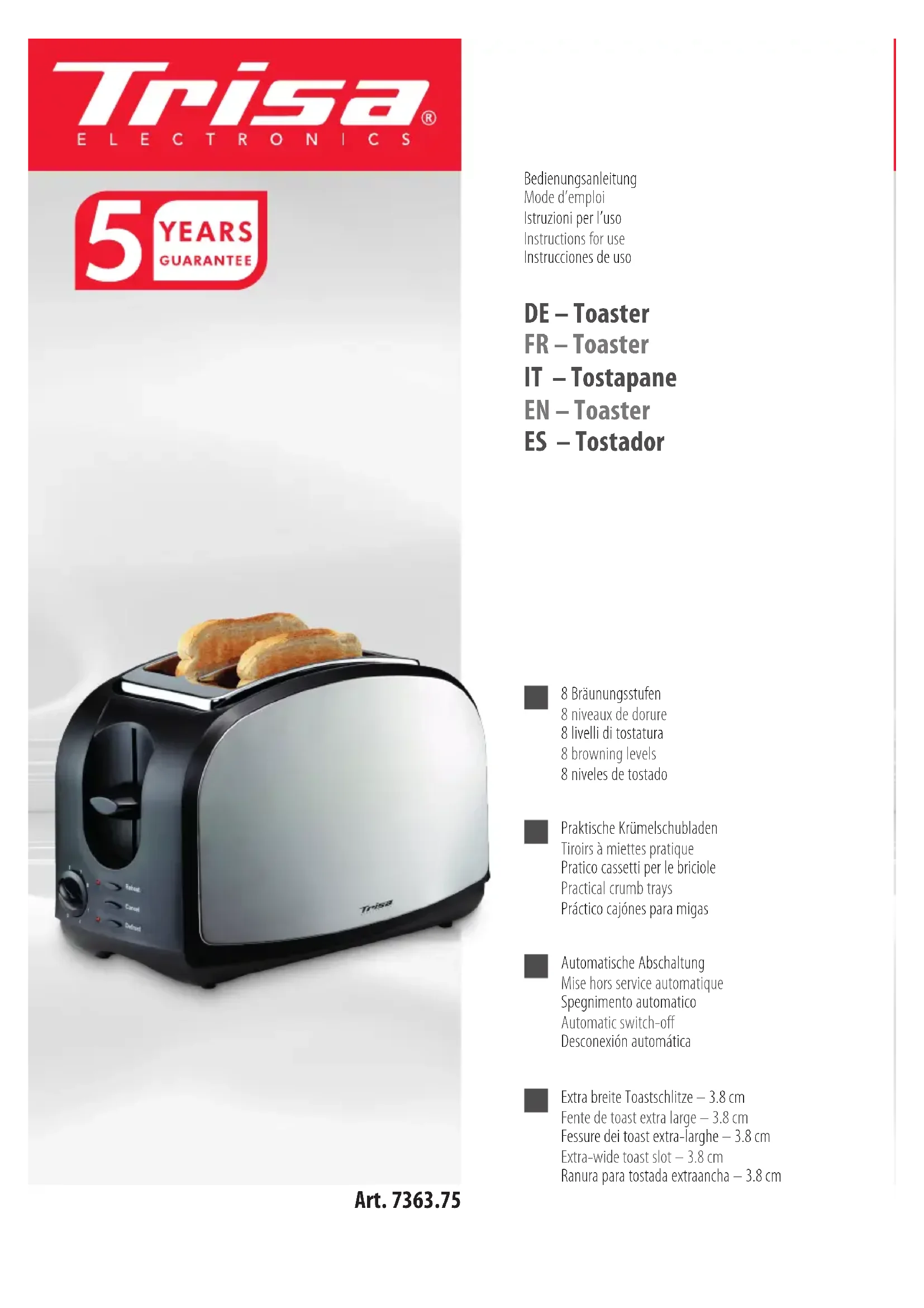 Crispy Toast 7363.75 - Grille-pain TRISA - Notice d'utilisation et mode d'emploi gratuit