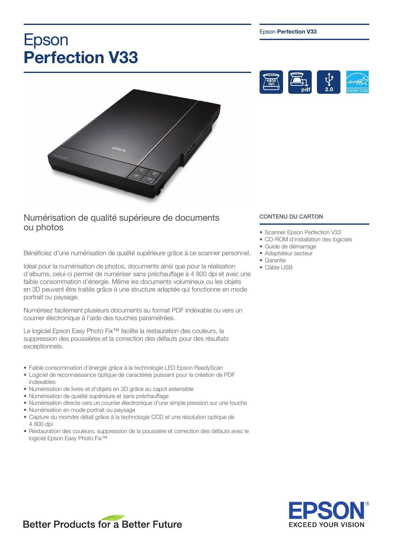 Epson Perfection V33 Epson Perfection V33 Numérisation de qualité supérieure de documents ou photos