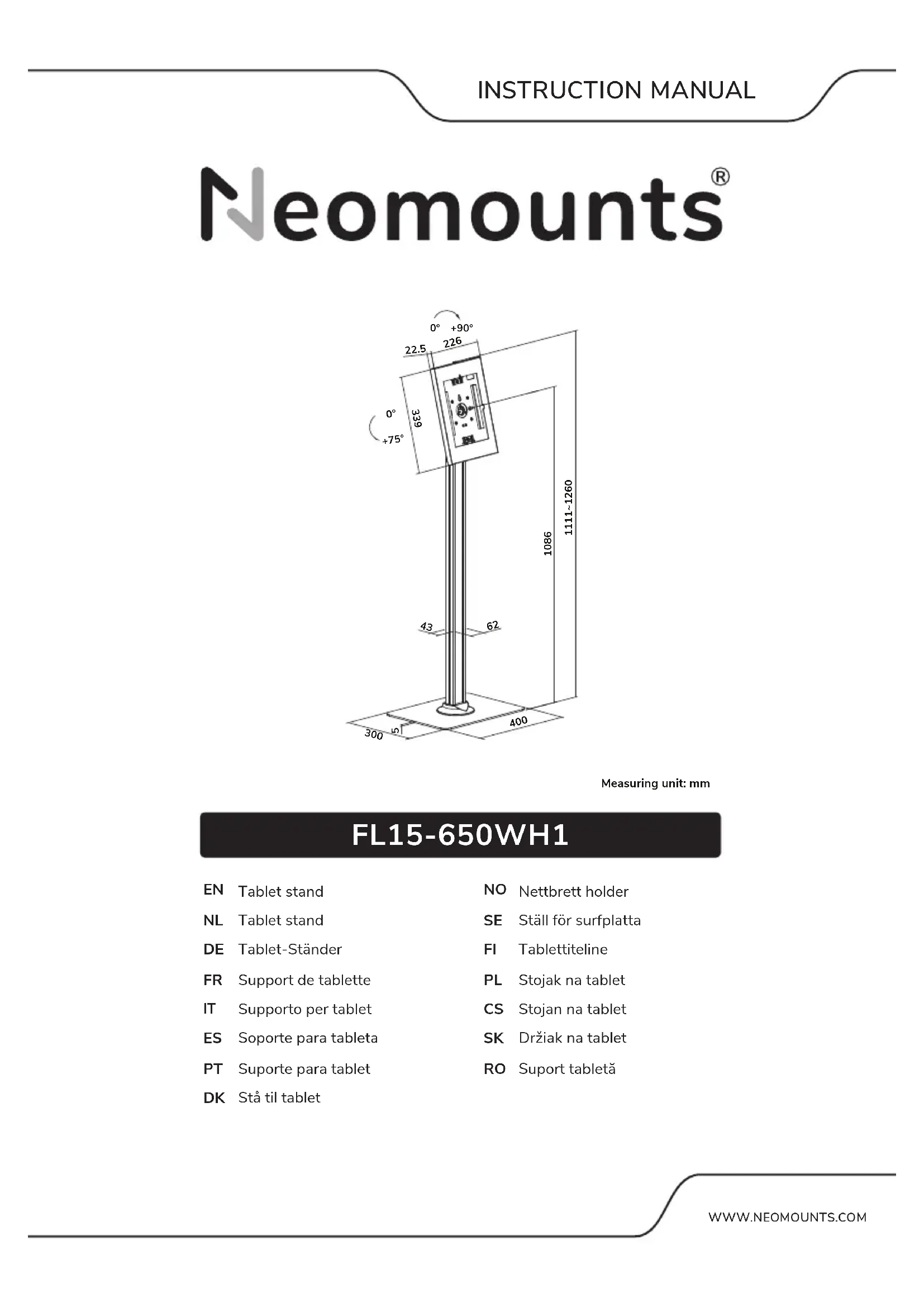 FL15650WH1 - Support pour tablette NeoMounts - Notice d'utilisation et mode d'emploi gratuit