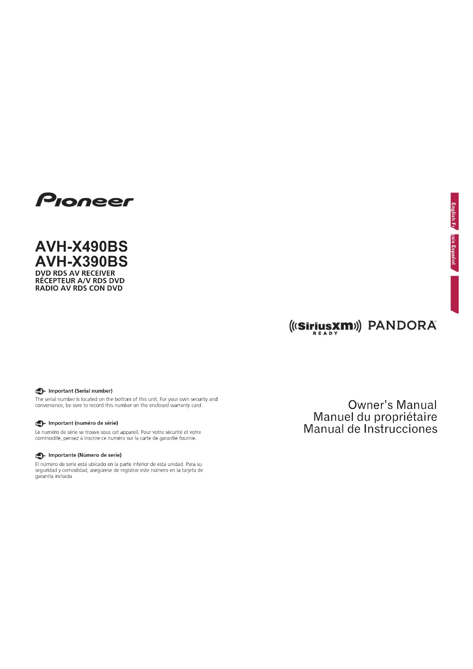 Retrouvez gratuitement la notice de l'appareil AVHX390BS PIONEER au format PDF.