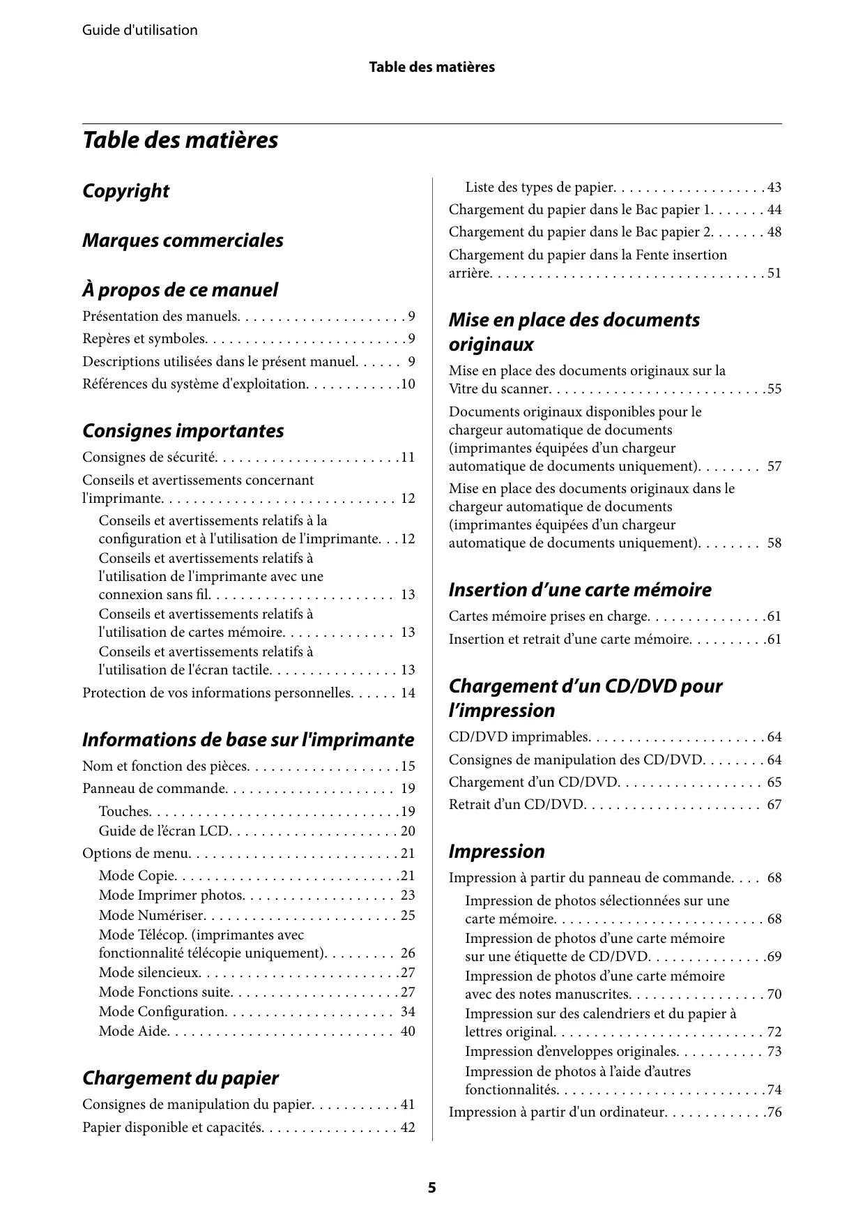 - Guide d'utilisation Table des matières Table des matières Liste des types de papier p. 43