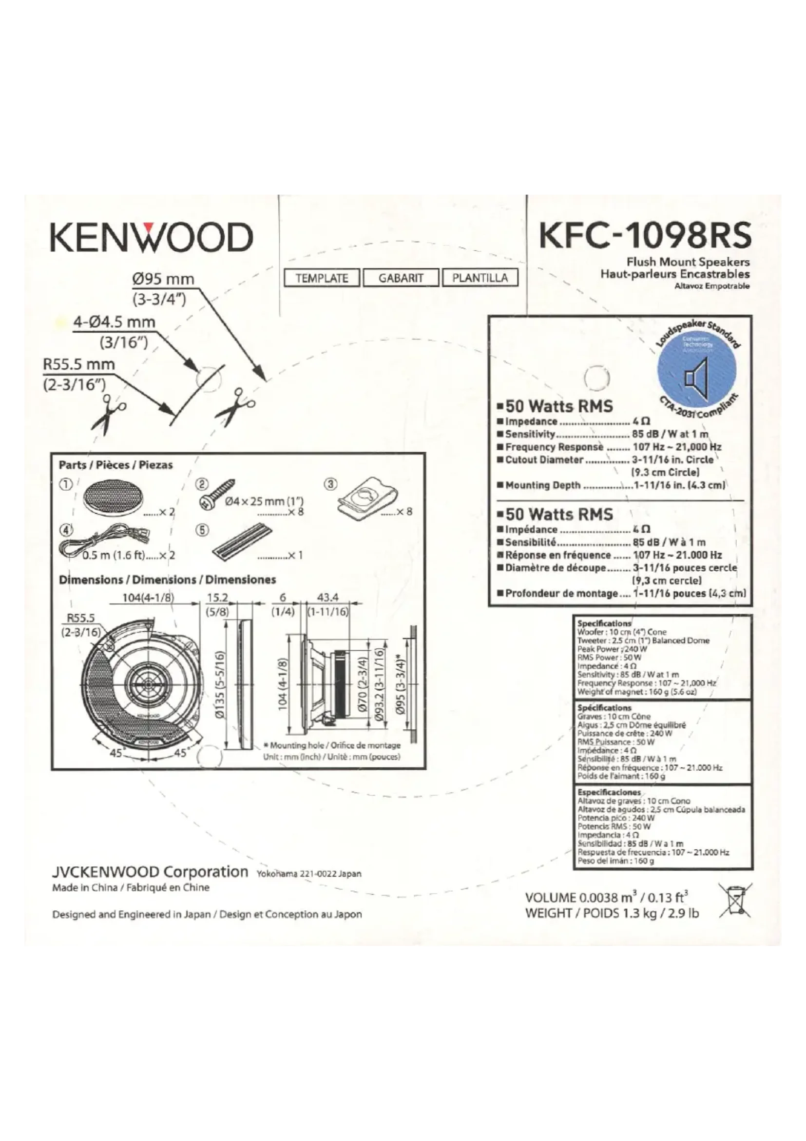 KFC1098RS - Haut-parleur KENWOOD - Notice d'utilisation et mode d'emploi gratuit