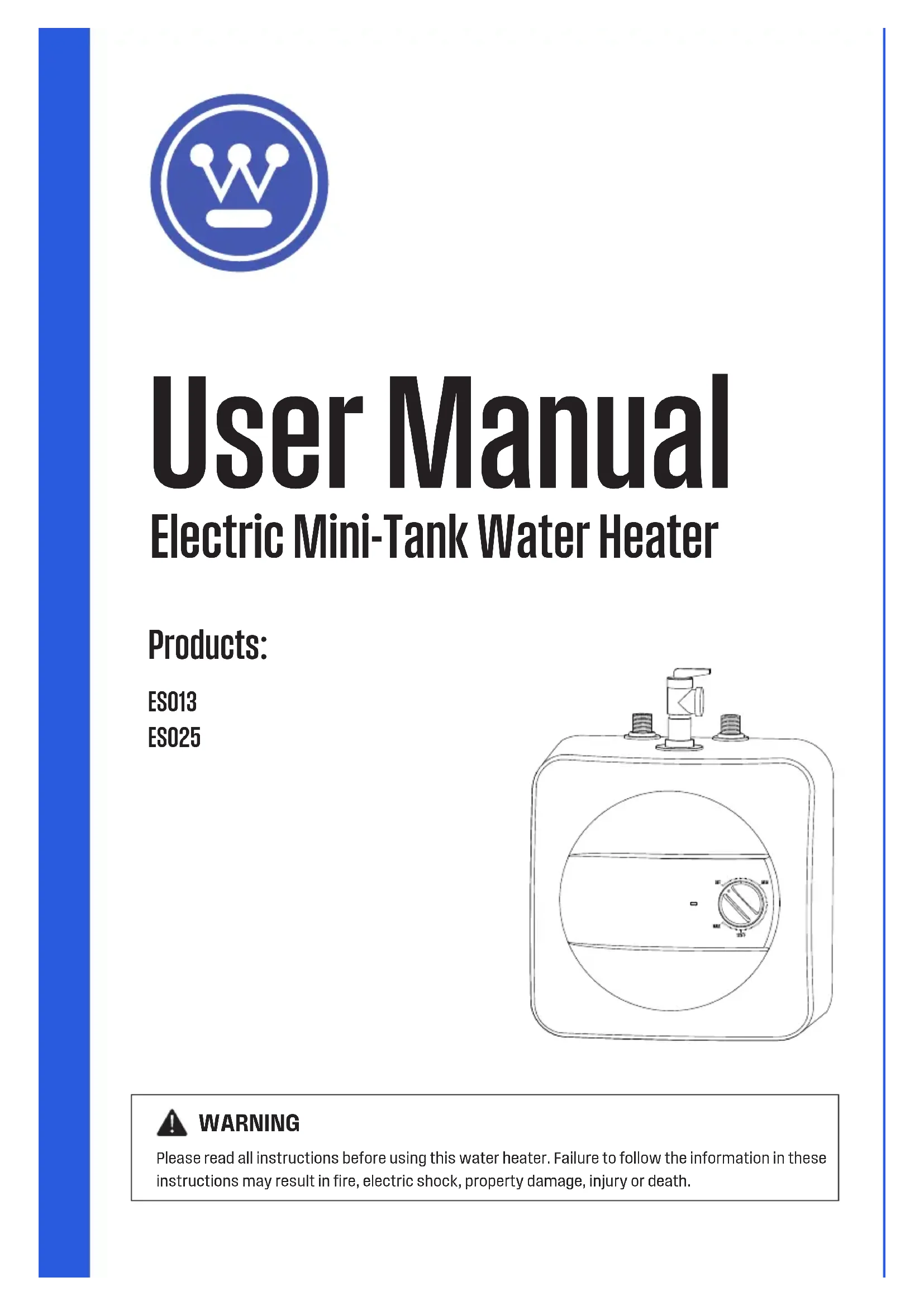 Apolo Classic ES013 ES025 Modèle (Unités) Données techniques Pression d'eau maximale (psi) Puissance à 120 VAC (Watts) Tension (VAC) Capacité (Gallons) Plage de température ( °F) Phases Ampérage (Amps) Poids non emballé (lbs) Informations sur le produit 22La soupape de sûreté de température et pression fournie est marquée d'une pression de réglage maximale (150 psi) qui ne dépasse pas la pression de service maximale marquée du chauffe-eau. n Orientez-la ou fournissez un tuyau de façon à ce que toute décharge de la valve sorte à moins de 6 pouces au-dessus, ou à n'importe quelle distance en dessous, du plancher structural, et ne puisse pas entrer en contact avec une partie électrique sous tension. L'ouverture de décharge ne doit en aucun cas être bloquée ou réduite en taille. n Installer la soupape de surpression de température et de pression dans l'ouverture prévue et marquée à cet effet dans le chauffe-eau. Instructions d'installation 3 Instructions d'installation ATTENTION n Installez l'équipement de protection de température et de pression requis par les codes locaux, mais pas moins qu'une soupape de sûreté combinée de température et de pression certifiée par un laboratoire d'essai reconnu à l'échelle nationale qui effectue des contrôles périodiques de la production des équipements ou des matériaux répertoriés, comme étant conforme aux exigences des Soupapes de sûreté et des dispositifs d'arrêt automatique du gaz pour l'alimentation en eau chaude. Pour réduire le risque de pressions et de températures excessives dans ce chauffe- eau: L’arrêt de l'alimentation en gaz pour systèmes à eau chaude, ANSI Z21.22.