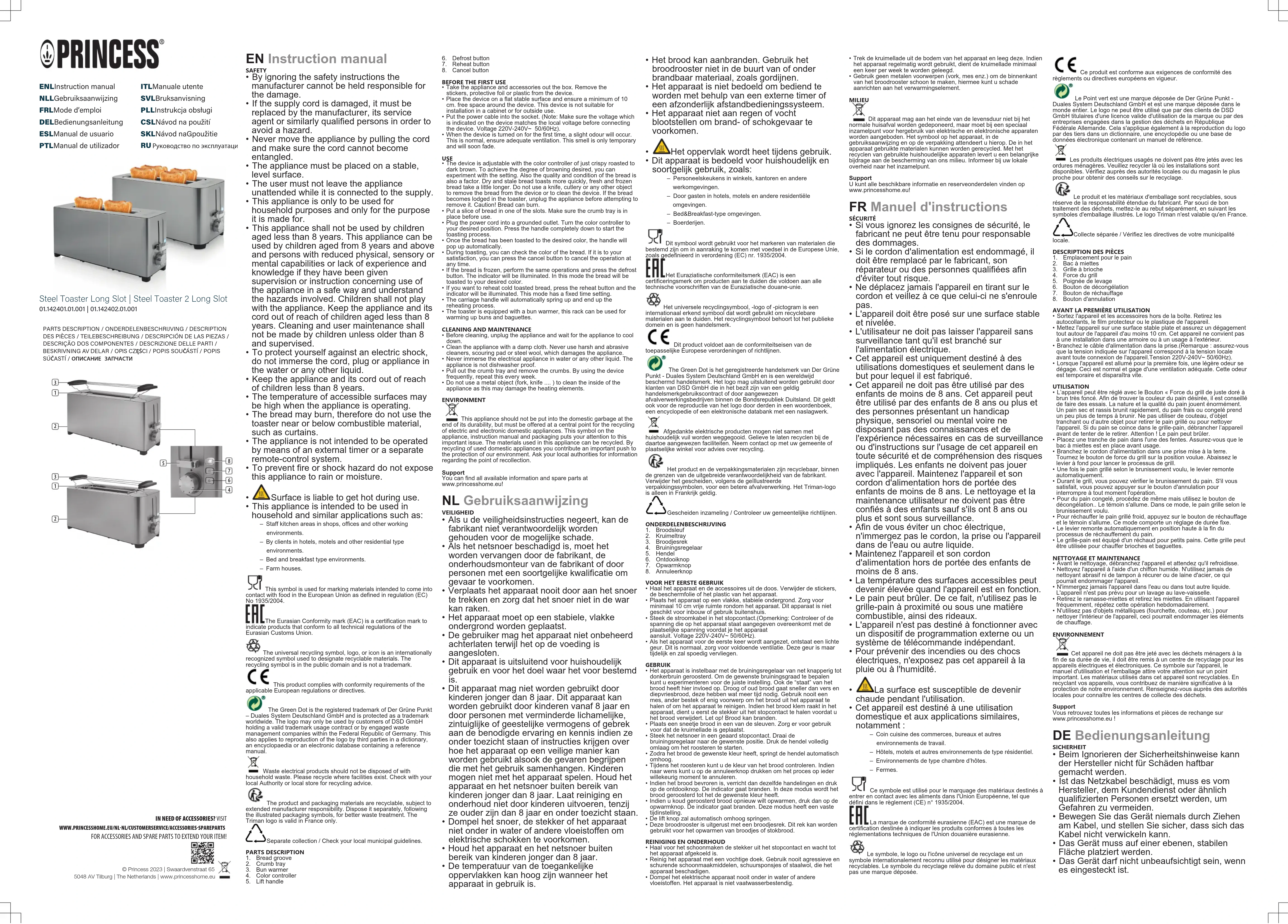 MODE D'EMPLOI Steel Toaster Long Slot 142402 PRINCESS