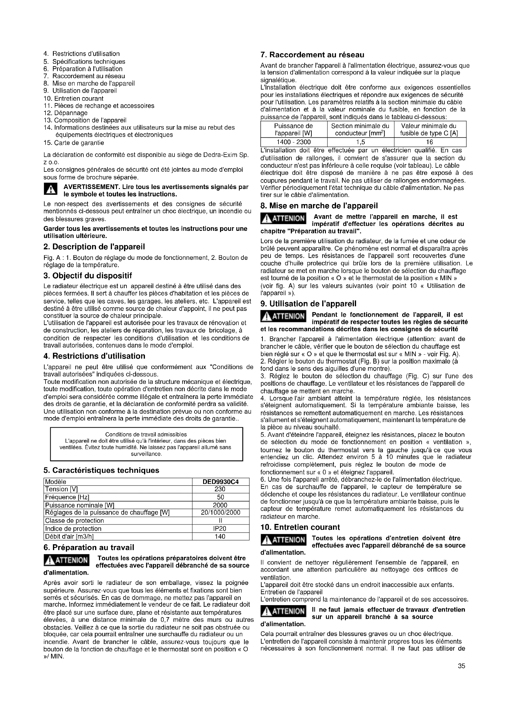 DED9930C4 - Chauffage DEDRA - Notice d'utilisation et mode d'emploi gratuit