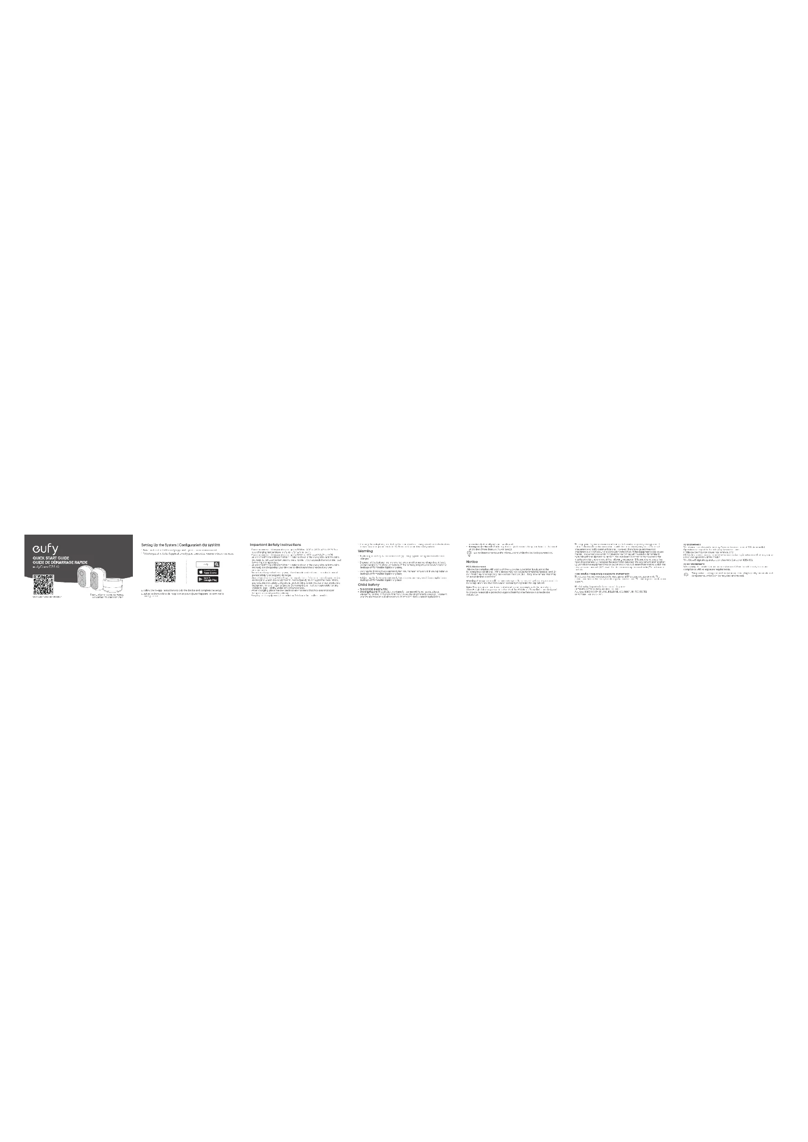 Setting Up the System | Configuration du systèm User Guide / Guide de l'utilisateur©Anker Innovations Limited. All rights reserved, registered in the United States and other countries. ©Anker Innovations Limited. Tous droits réservés, enregistrés aux États-Unis et dans d'autres pays. Anker Innovations Limited Unit 56, 8th Floor, Tower 2, Admiralty Centre, 18 Harcourt Road, Hong Kong Model | Modèle : T8110, T8025 51005005732_V3 Customer Service | Service clientèle 12-month limited warranty | Garantie de 12 mois (US/Canada) +1 (800) 988 7973 support@eufy.com support.au.eufy.com (AU) Australian and New Zealand customers, please scan the QR code for the warranty information. Pour les clients australiens et néo-zélandais, veuillez scanner le QR code pour obtenir des informations sur la garantie. @EufyOfficial @EufyOfficial @EufyOfficial Consignes de Sécurité Importantes
