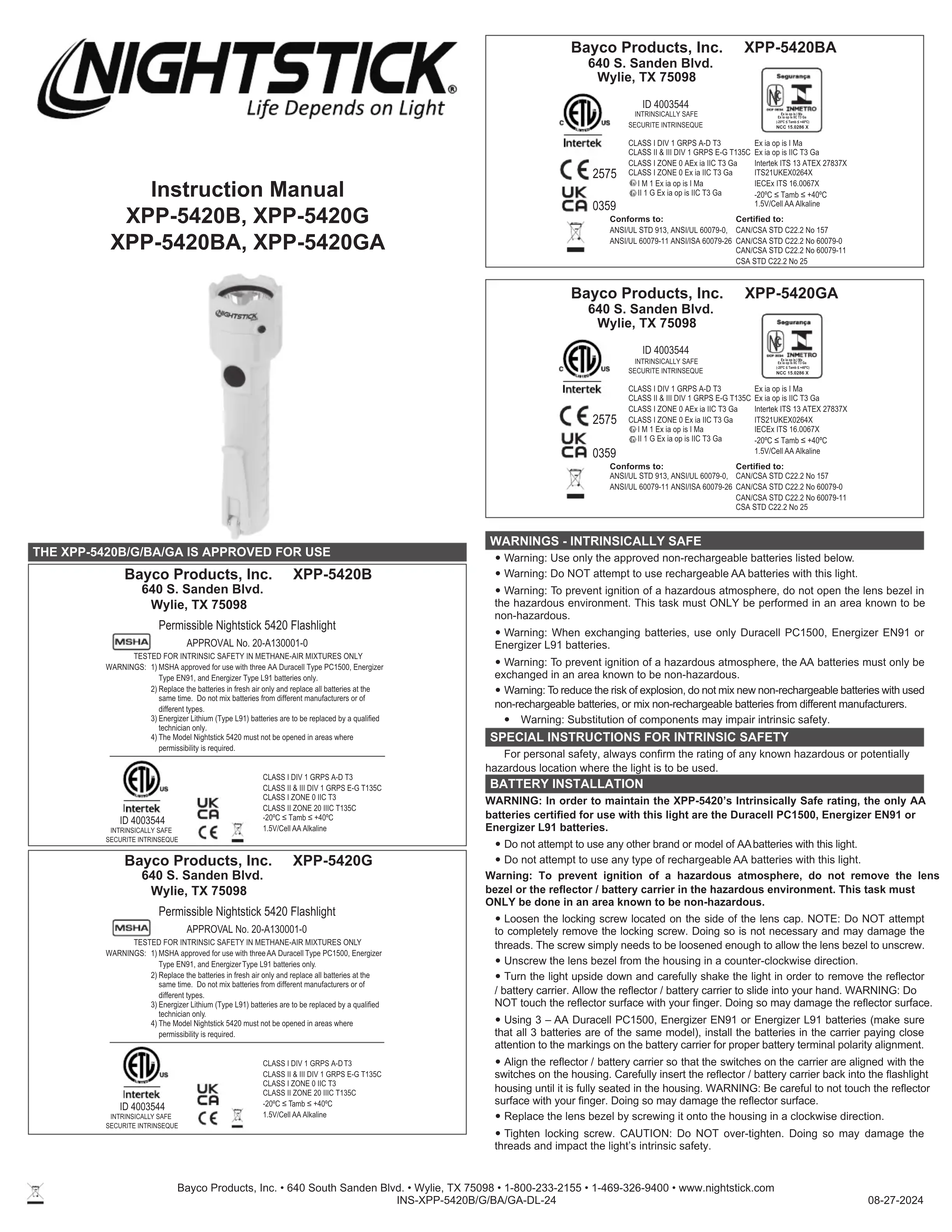 XPP5420B - Lampe de poche NightStick - Notice d'utilisation et mode d'emploi gratuit