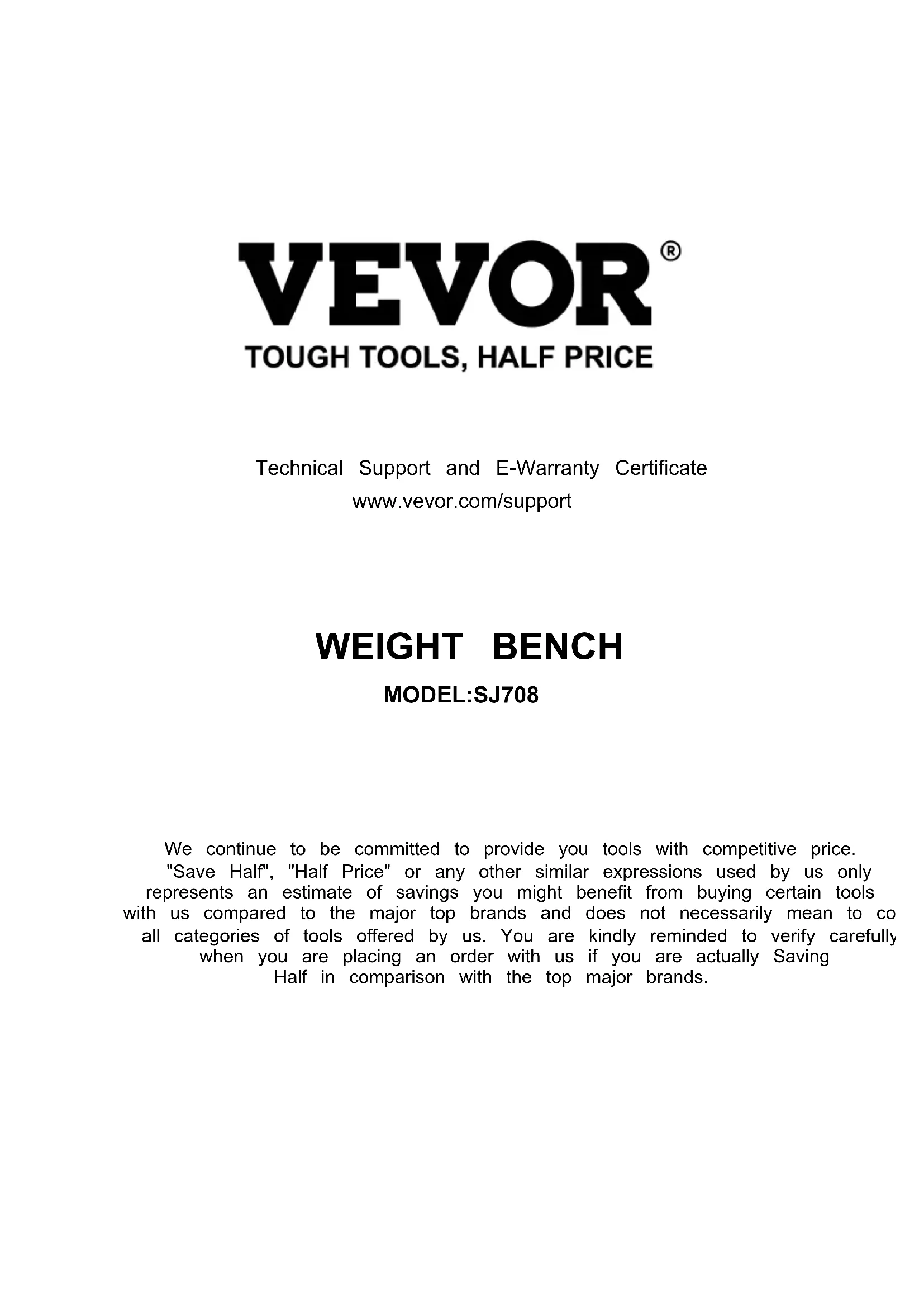 E-CrossStu GmbH Mainzer Landstr.69, 60329 Frankfurt am Main.Technical Support and E-Warranty Certificate www.vevor.com/supportBANCDEMUSCULATION «Économisezlamoitié»,«Moitiéprix»outouteautreexpressionsimilaireutiliséepar nousnereprésentequ'uneestimationdeséconomiesquevouspourriezréaliserenachetant certainsoutilscheznousparrapportauxgrandesmarquesetnecouvrepasnécessairementtoutes lescatégoriesd'outilsquenousproposons.Nousvousrappelonsdebienvouloirvérifier soigneusementlorsquevouspassezunecommandecheznoussivous économisezréellementlamoitiéparrapportauxgrandesmarques. Nouscontinuonsànousengageràvousfournirdesoutilsàdesprixcompétitifs.