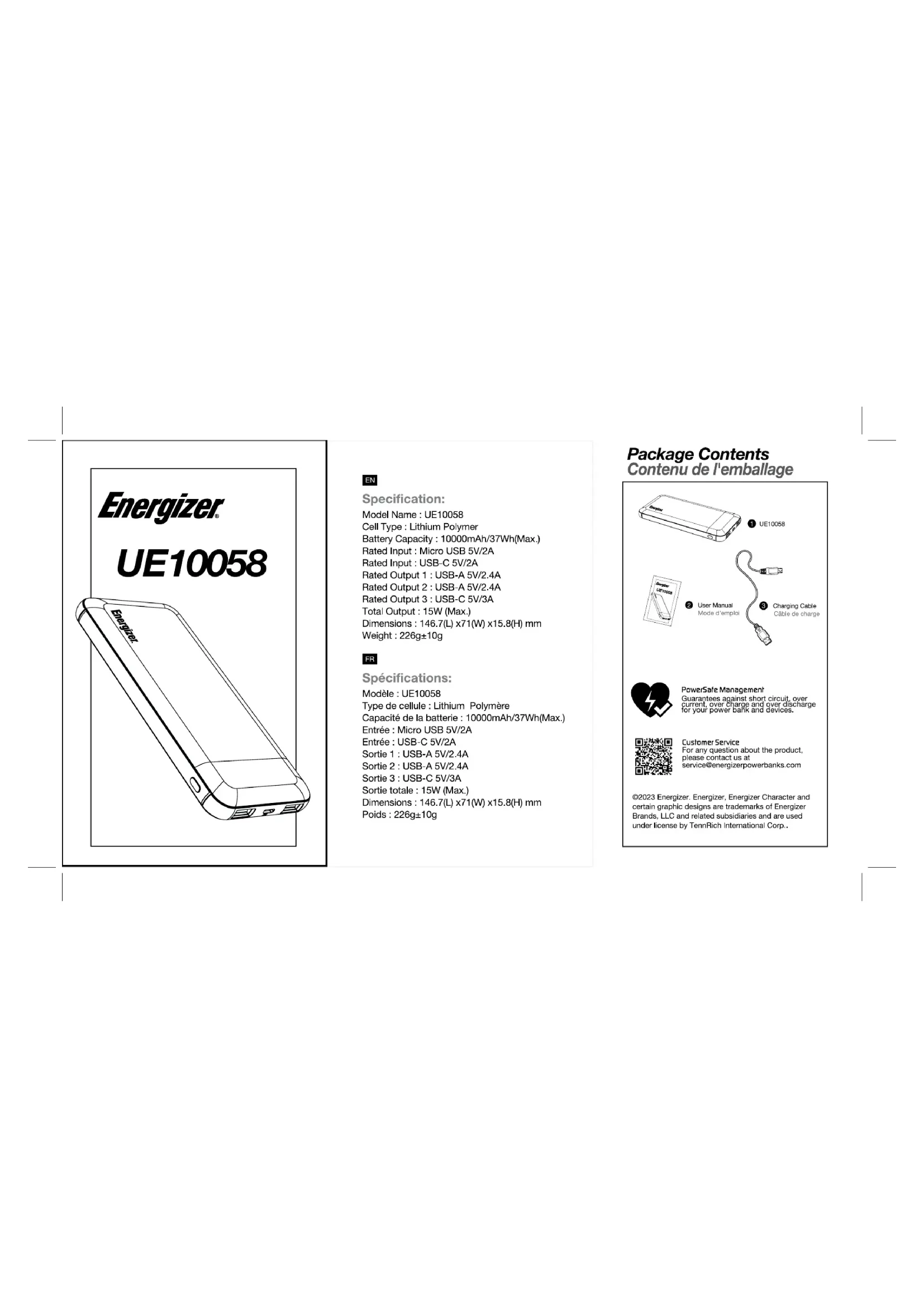 UE10058 - Batterie portable ENERGIZER - Notice d'utilisation et mode d'emploi gratuit