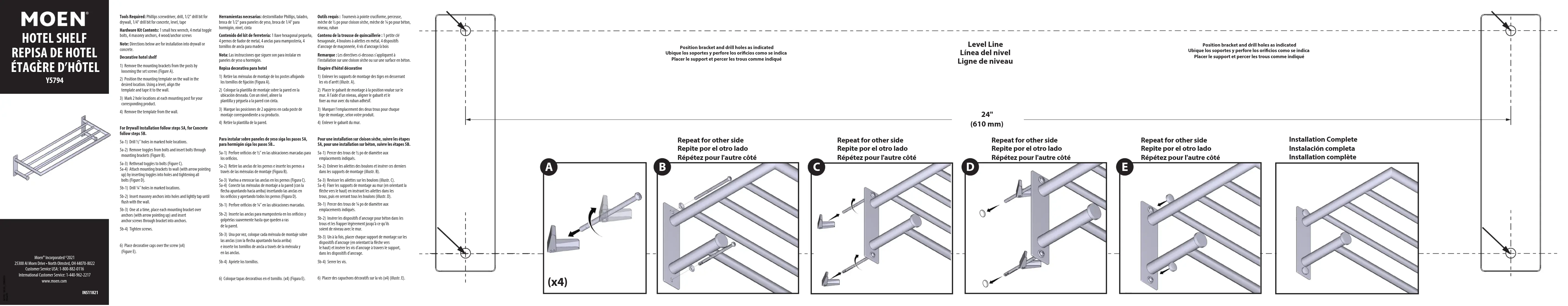 D E (x4) Repeat for other side Repite por el otro lado Répétez pour l'autre côté Repeat for other side Repite por el otro lado Répétez pour l'autre côté Repeat for other side Repite por el otro lado Répétez pour l'autre côté Repeat for other side Repite por el otro lado Répétez pour l'autre côté Installation Complete Instalación completa Installation complète