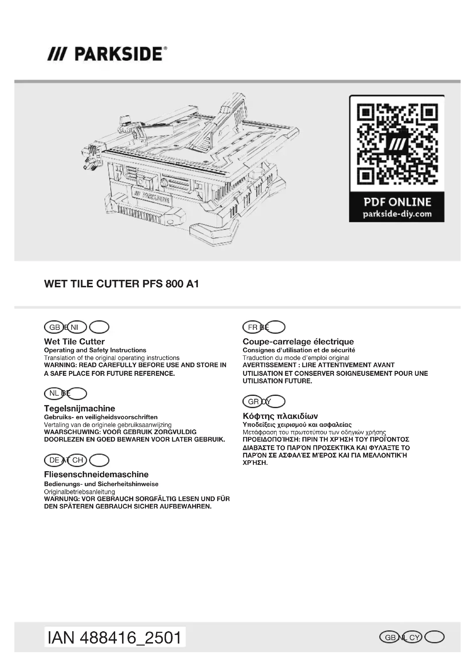 MODE D'EMPLOI PFS 800 A1 PARKSIDE