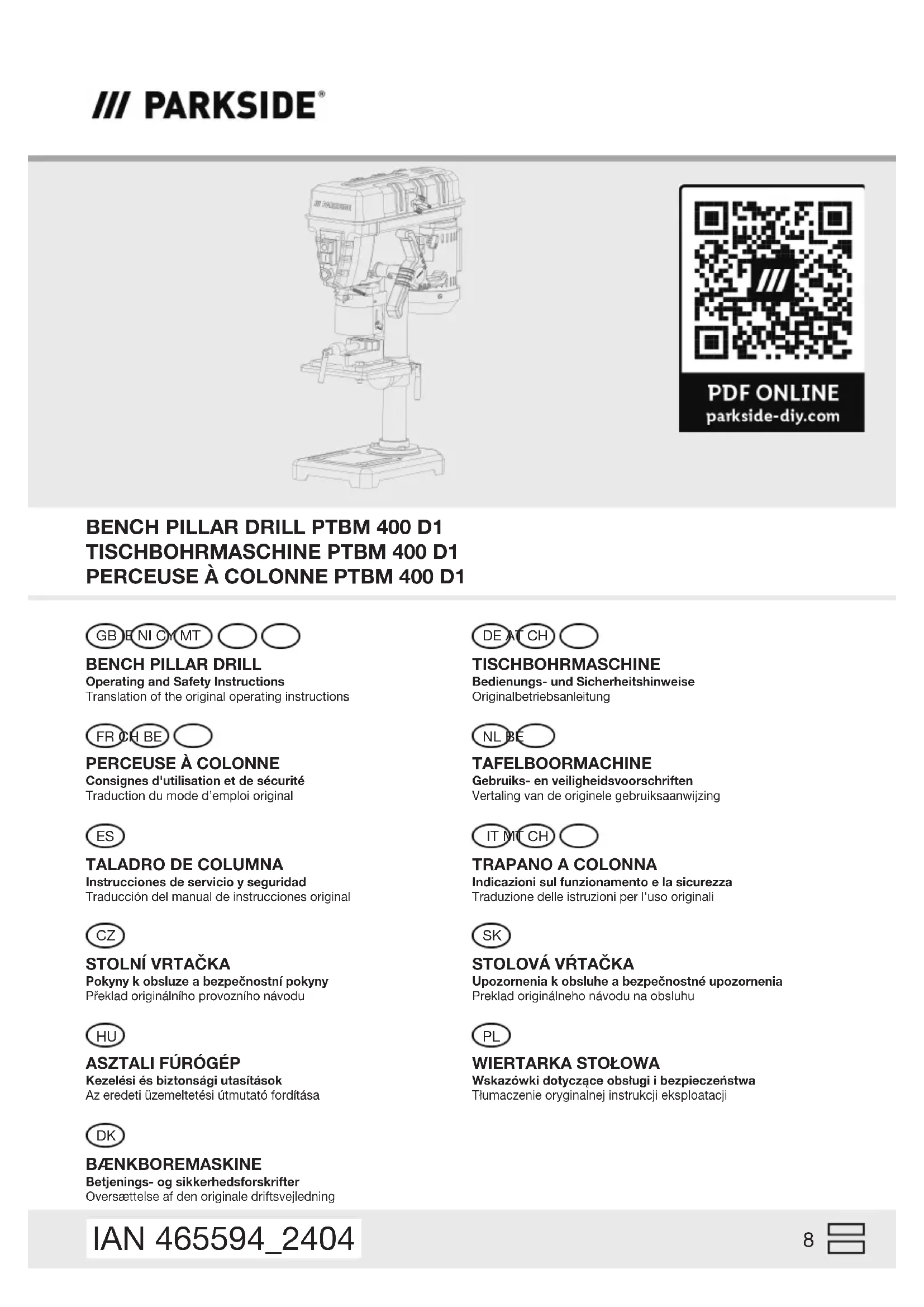 PTBM 400 D1 - Perceuse PARKSIDE - Notice d'utilisation et mode d'emploi gratuit