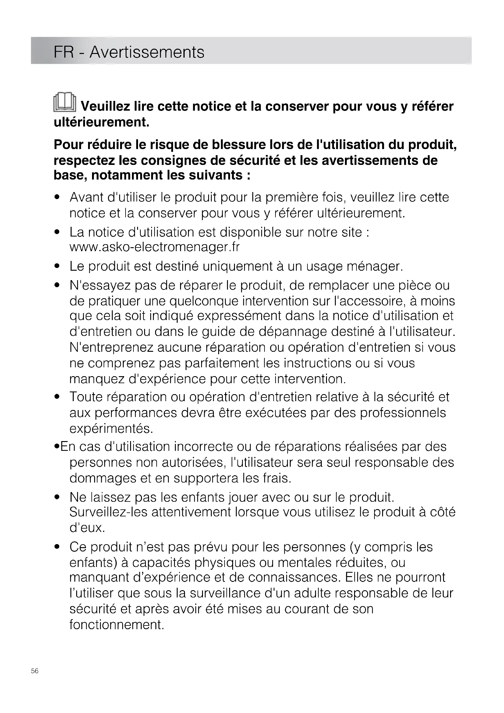 - La notice d'utilisation est disponible sur notre site : www.asko-electromenager.fr