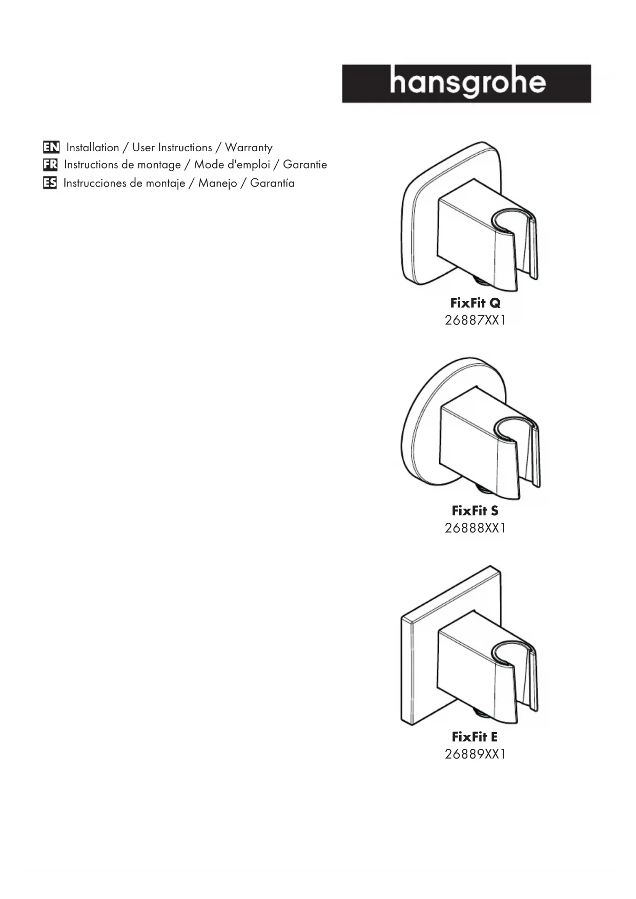 MODE D'EMPLOI FixFit Q 26887341 Hansgrohe