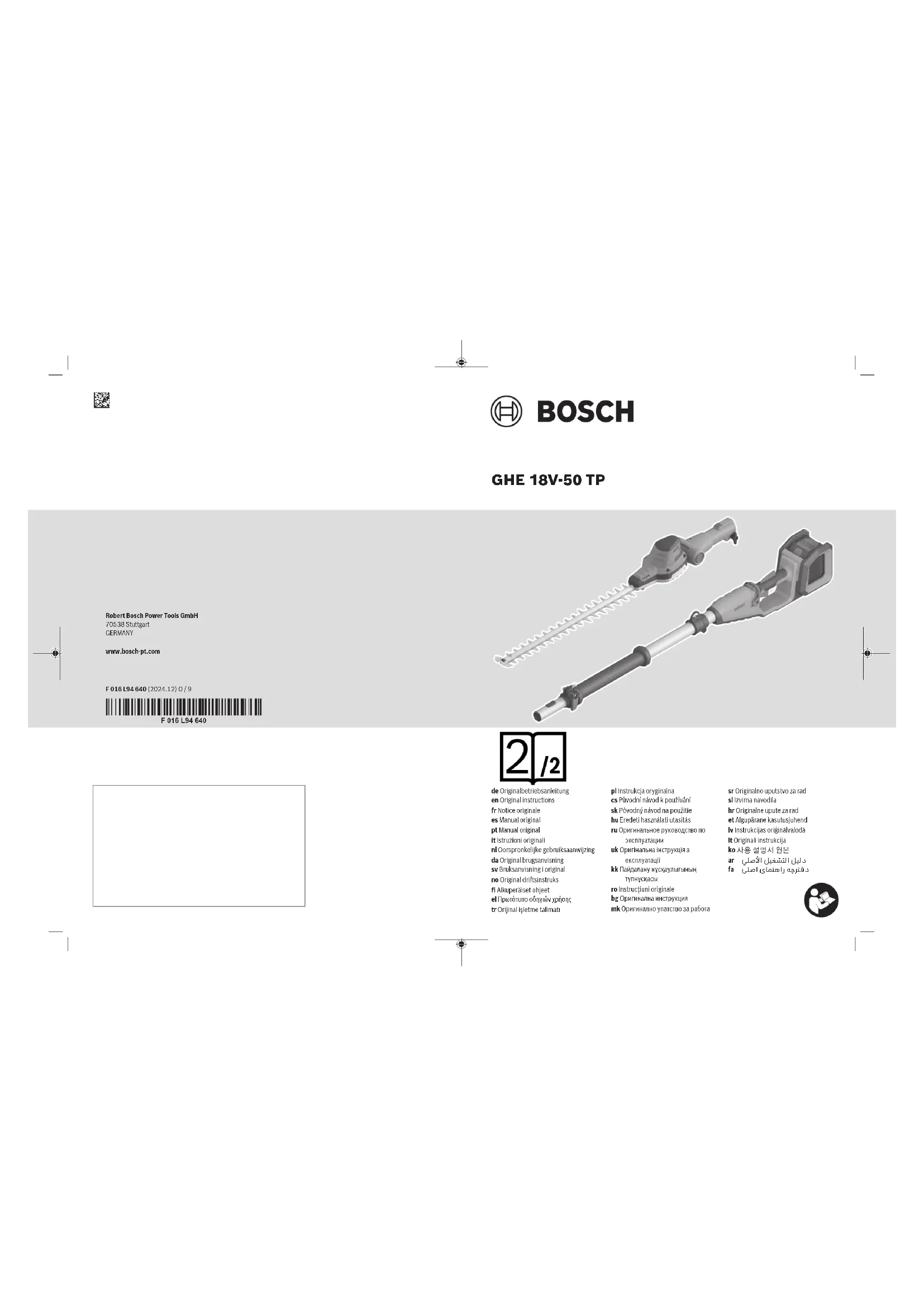 GHE 18V50 TP Professional - Taille-haies BOSCH - Notice d'utilisation et mode d'emploi gratuit