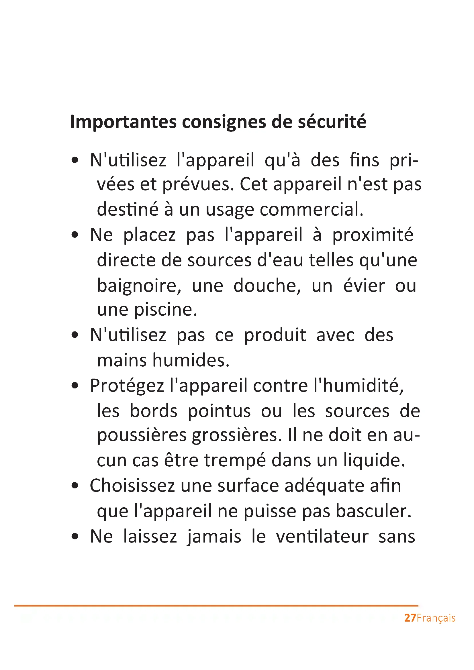 - Ne laissez jamais le venlateur sans28 Français surveillance et choisissez l'emplace- ment de telle sorte qu'il ne soit acces- sible à aucun animal ou enfant.