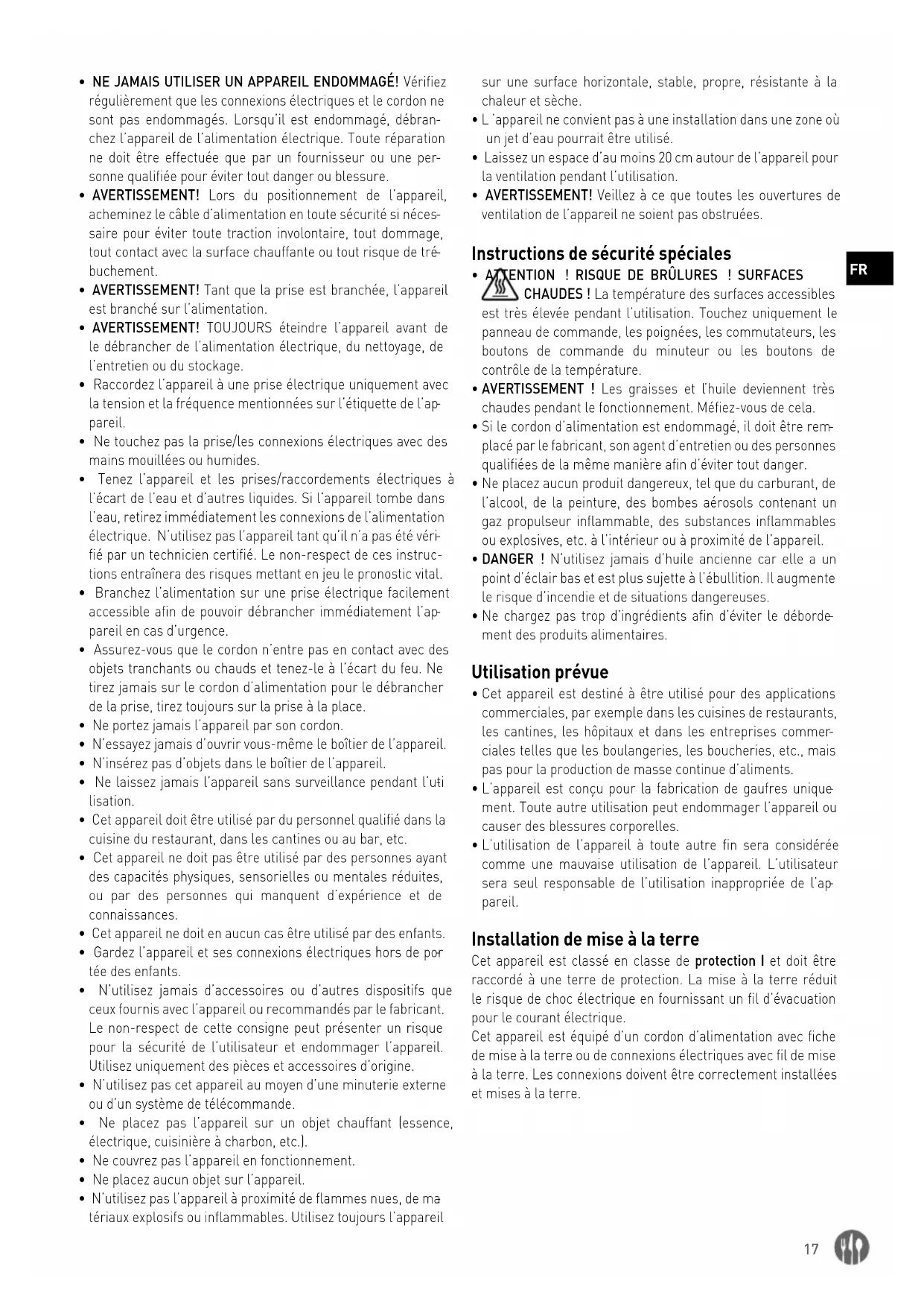- Cet appareil doit être utilisé par du personnel qualifié dans la cuisine du restaurant, dans les cantines ou au bar, etc.