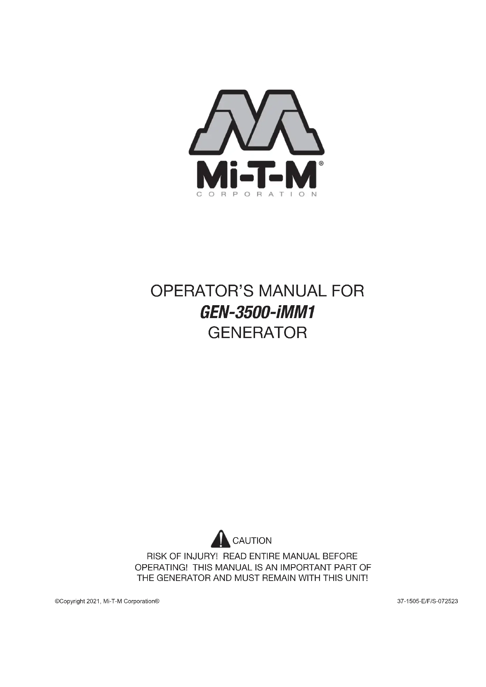 Retrouvez gratuitement la notice de l'appareil GEN3500iMM1 Mi-T-M au format PDF.