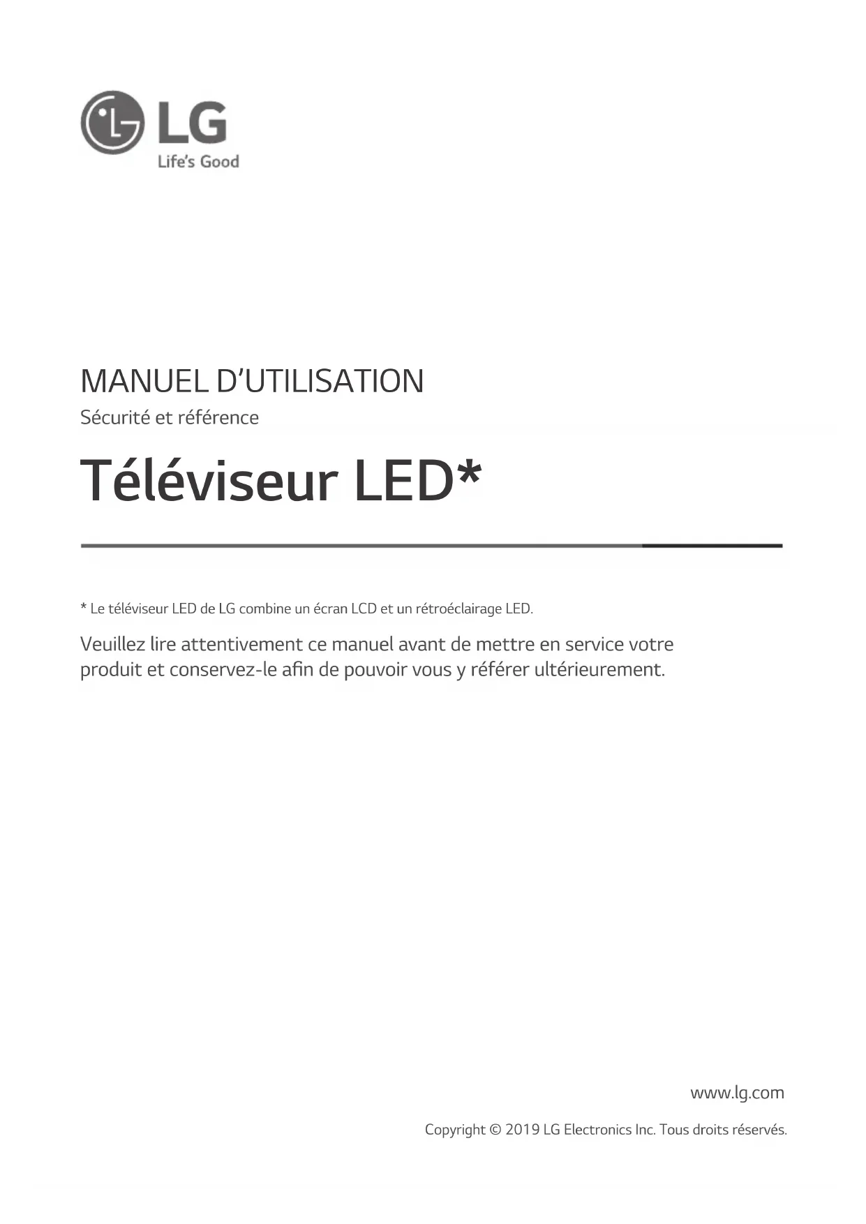 - Le téléviseur LED de LG combine un écran LCD et un rétroéclairage LED. Sécurité et référence Veuillez lire attentivement ce manuel avant de mettre en service votre produit et conservez-le an de pouvoir vous y référer ultérieurement.2 Avertissement! Consignes de sécurité AVERTISSEMENT