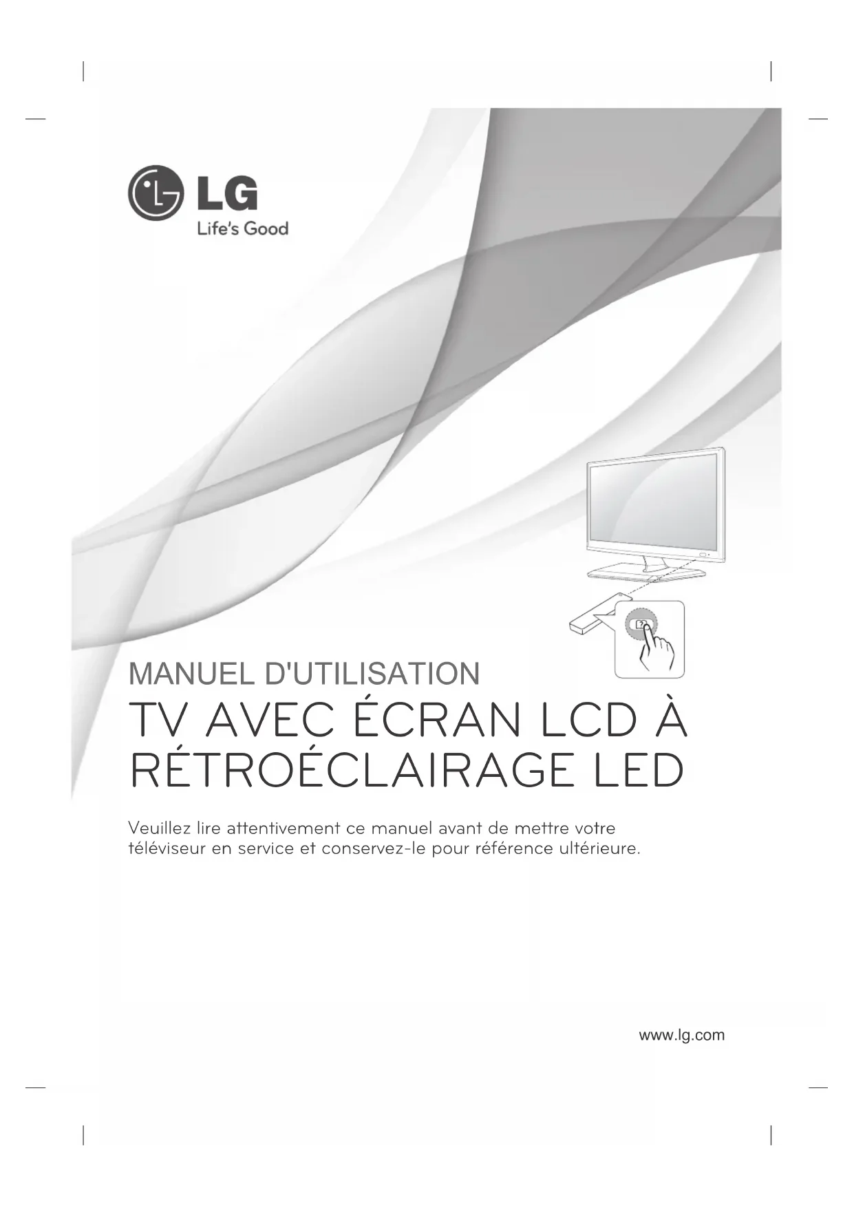 WennkeinSignalbesteht,obwohldasTV-Geräteingeschaltetist,schaltetsichdasGerätnach15Minutenautomatischab.www.lg.com Veuillez lire attentivement ce manuel avant de mettre votre téléviseur en service et conservez-le pour référence ultérieure. MANUEL D'UTILISATION