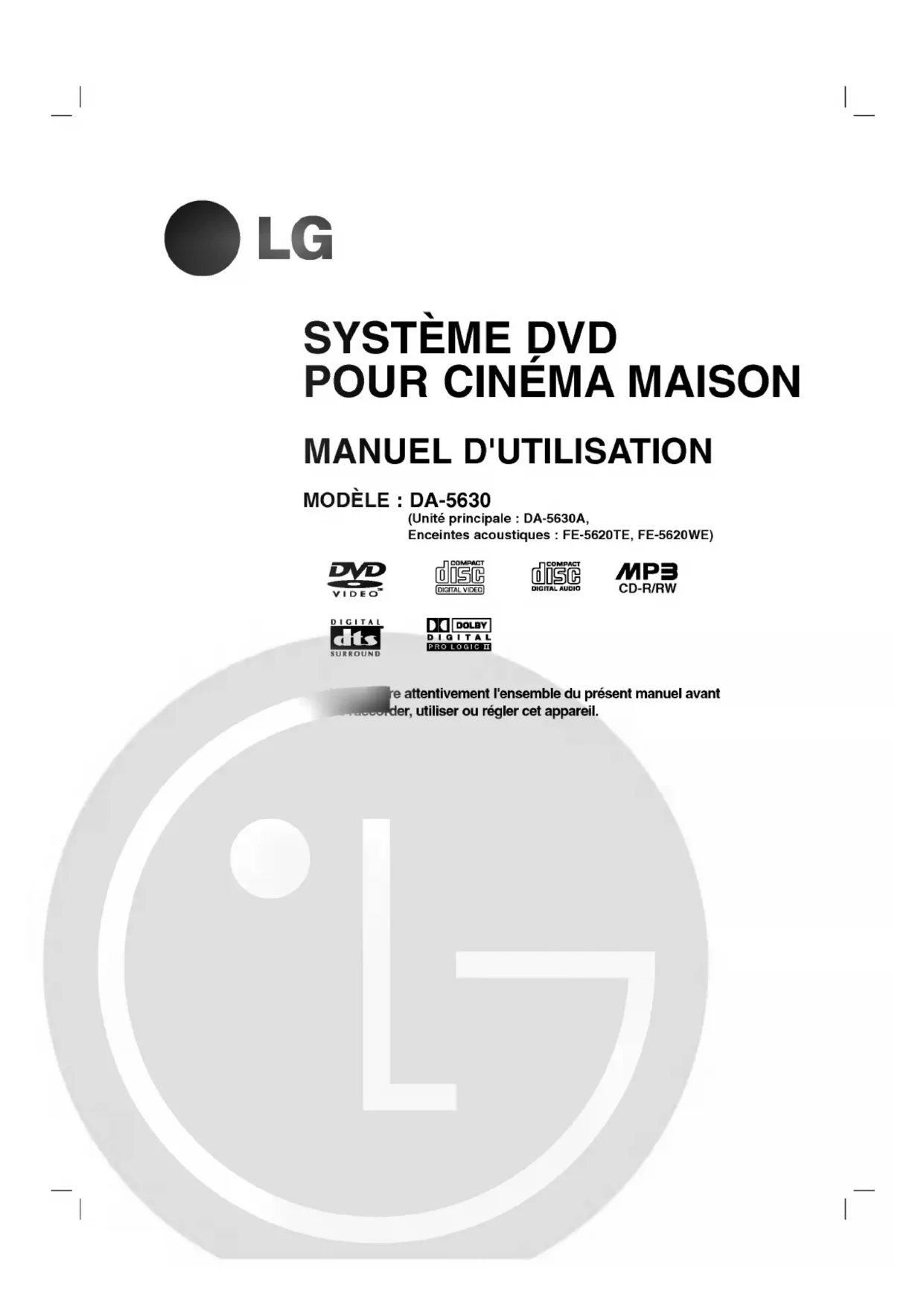 MODE D'EMPLOI DA5630A LG